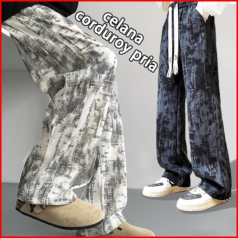 12h Kirim Celana Corduroy Panjang Pria 2025 Korean Style Jumbo Baggy Pants Celana Loose Pria Hitma