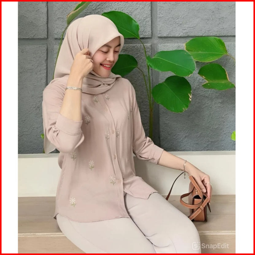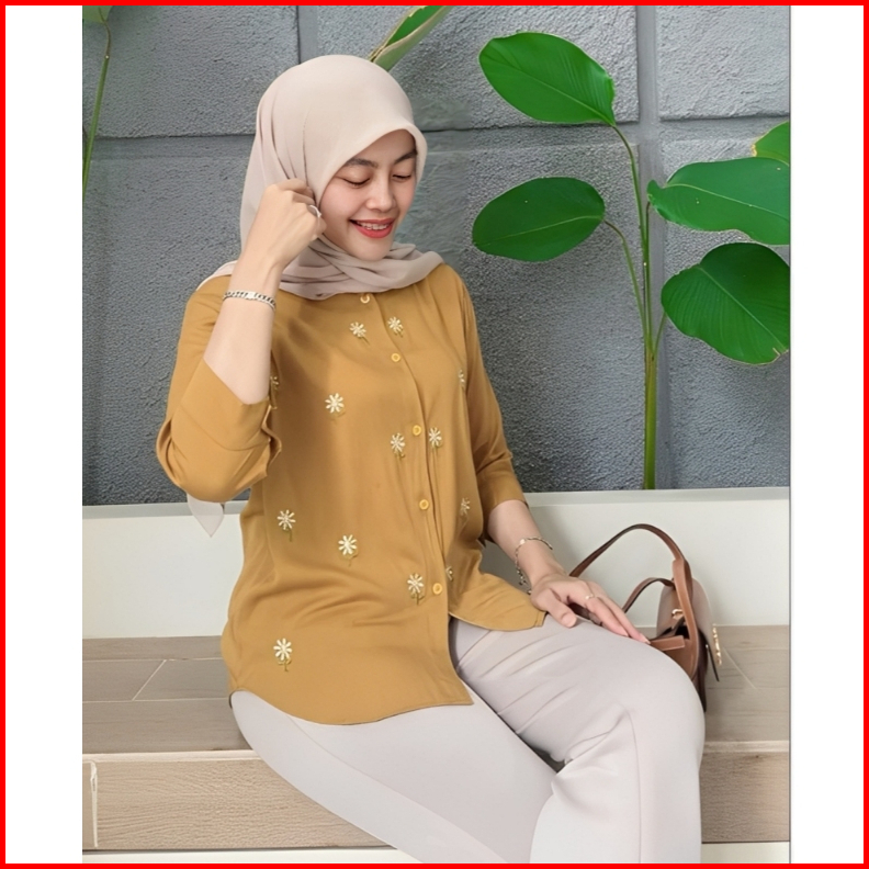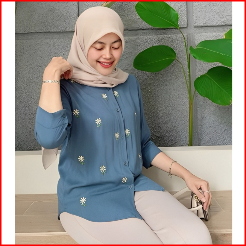 Kemeja Wanita Atasan Wanita Rayon Bordir Motif Bunga Lengan 7 8 Kualitas Terbaik Ld 120