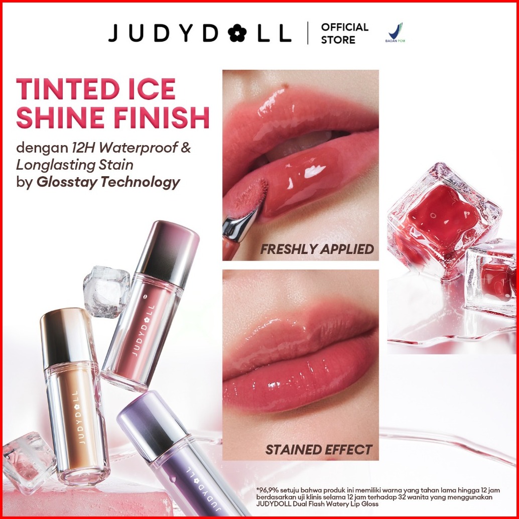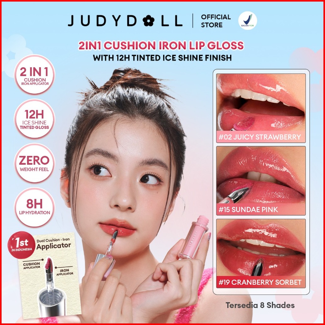 Baru Judydoll Dual Flash Watery Lip Gloss 2.4gr 2in1 Cushion Iron Lip Gloss