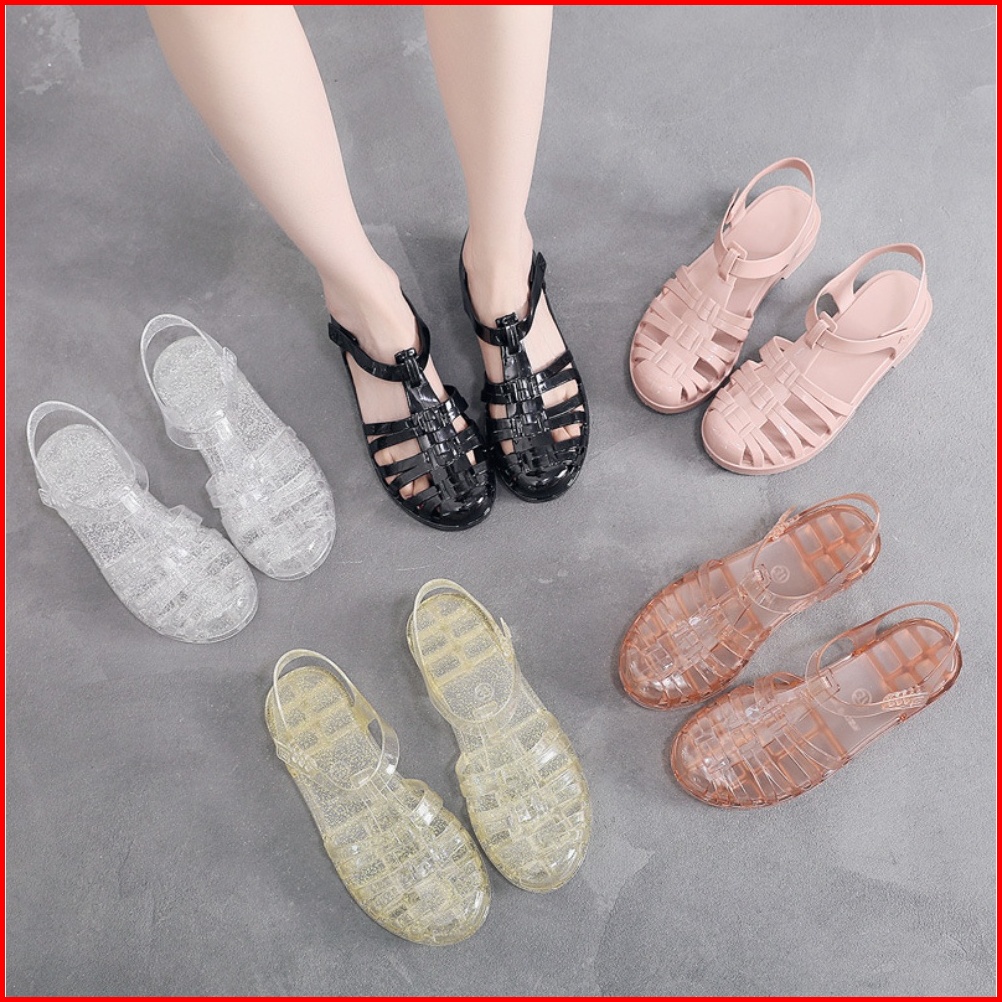 Okaido Store Sandal Model Fisherman Wanita Gaya Korea Style Jelly Transparan Mewah Elastis Kekinian