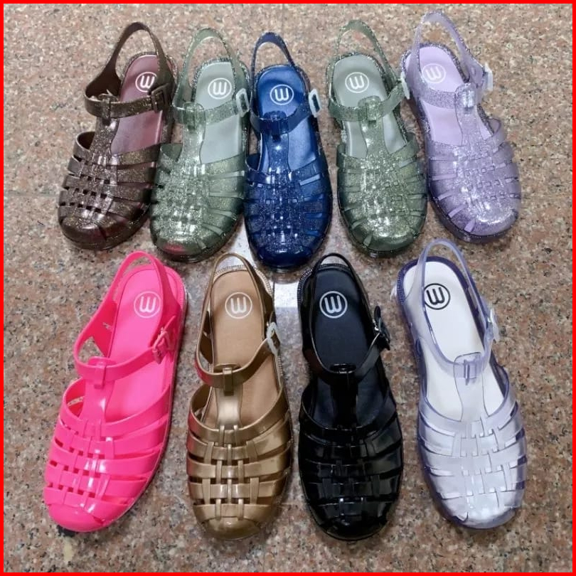 Sandal Jelly Shoes Wanita Sepatu Sandal Meisha Color Glitter Transparant Gladiator Korea Kekinian Possession Dewasa Flat