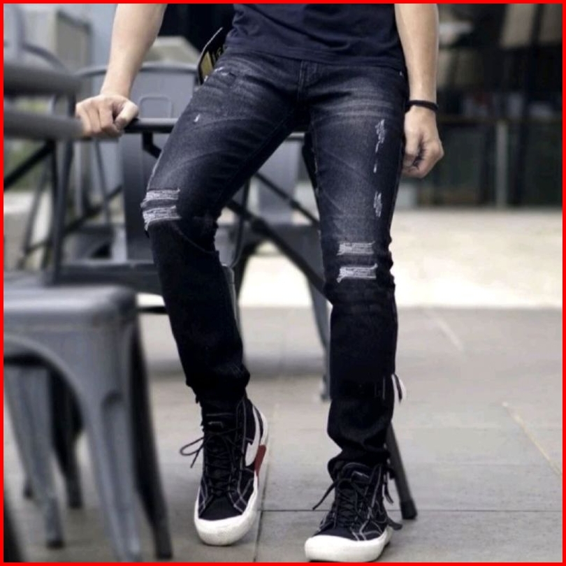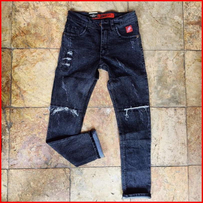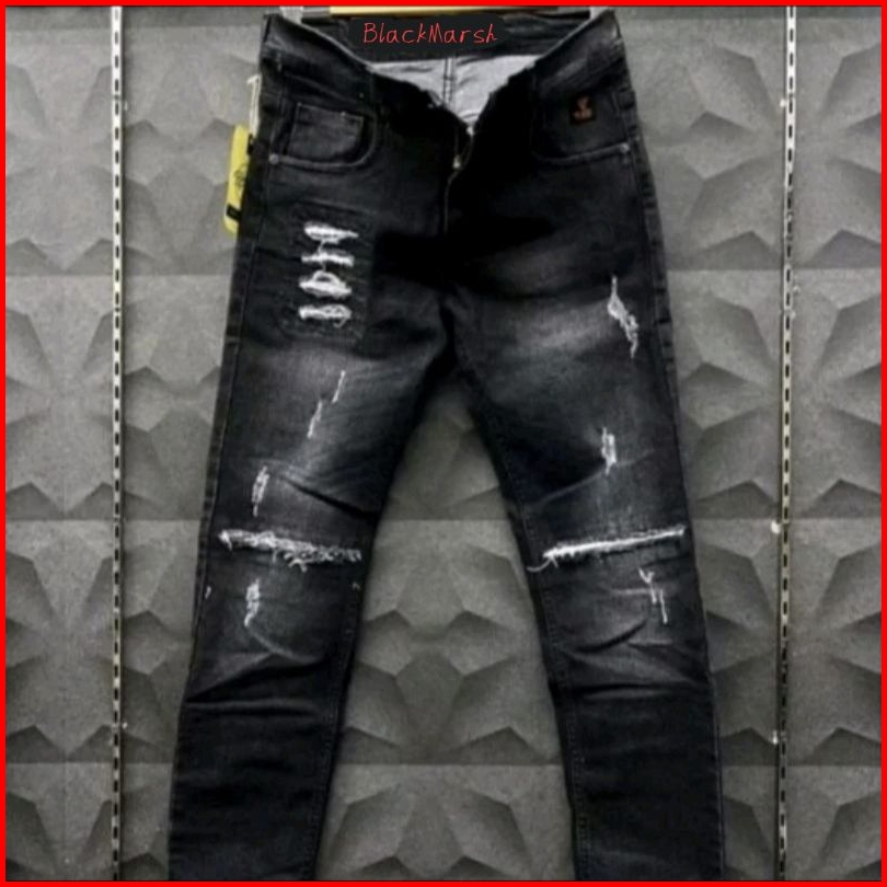 Celana Panjang Pria Model Ripped Motif Snow Wash