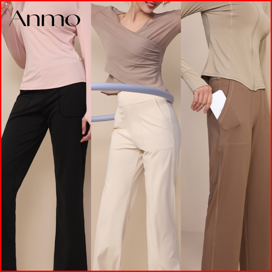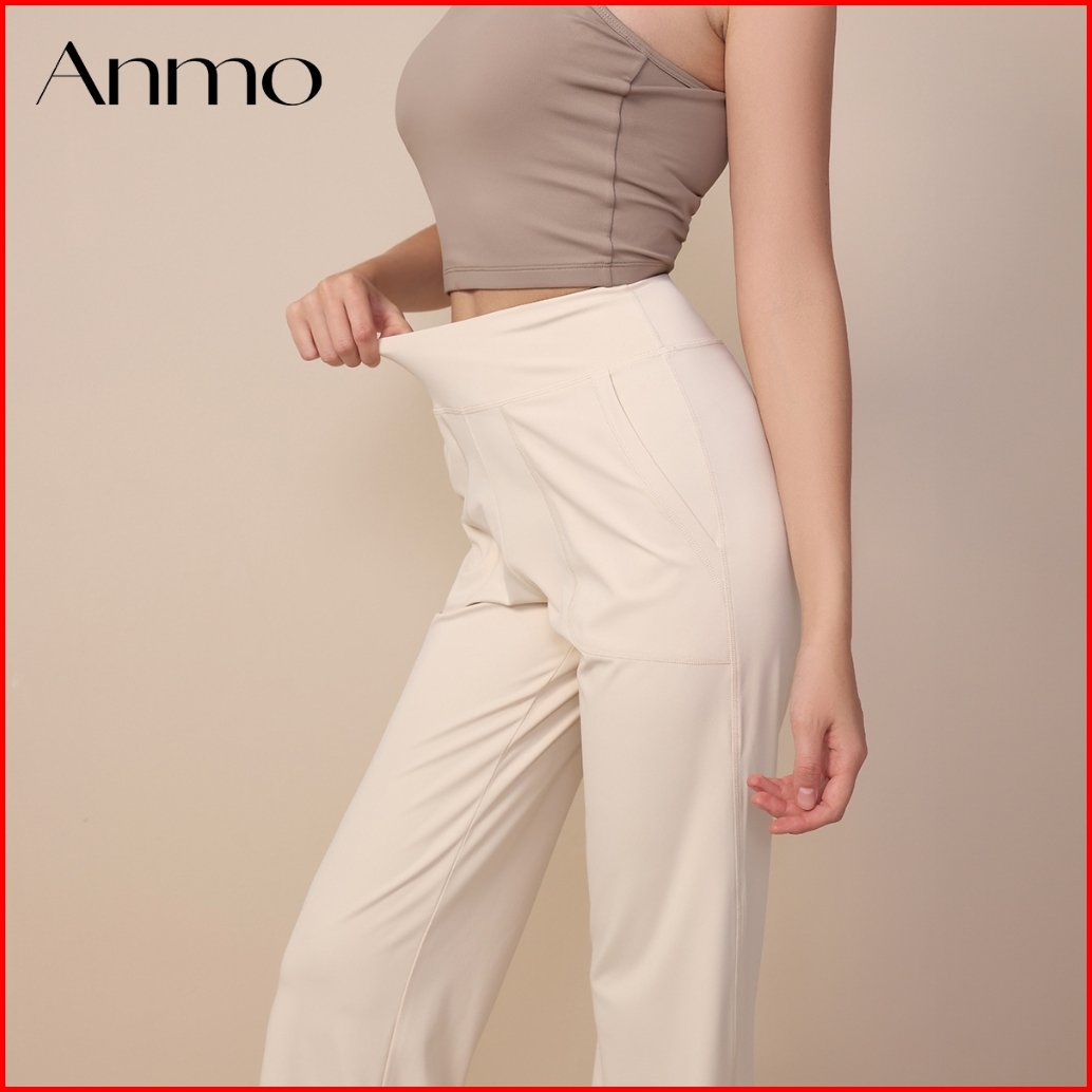 Anmo-celana Kasual Olahraga Wanita High-waist Model Lurus Longgar Desain Cutbray Santai