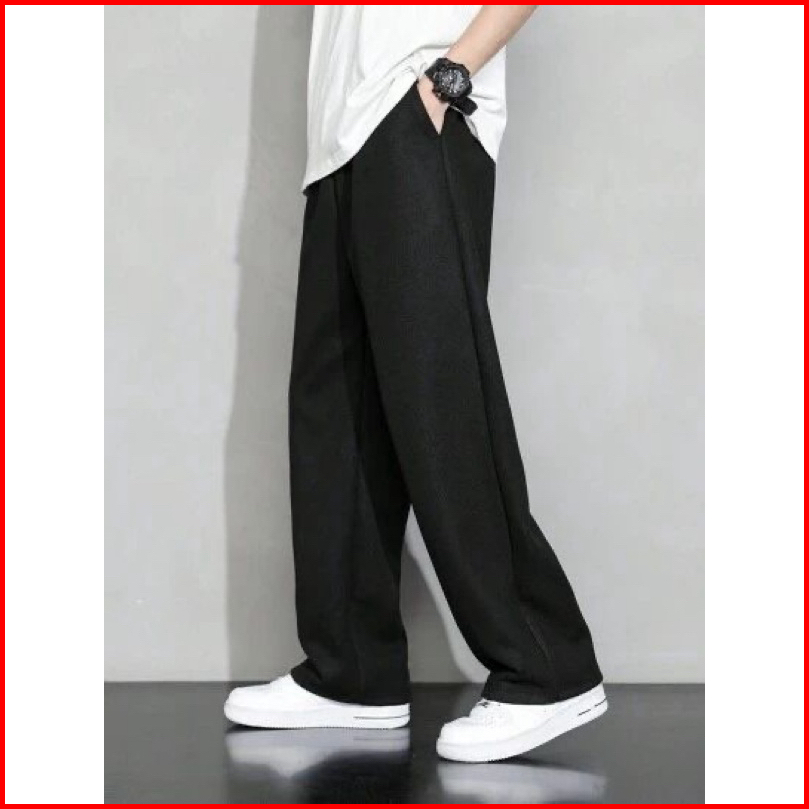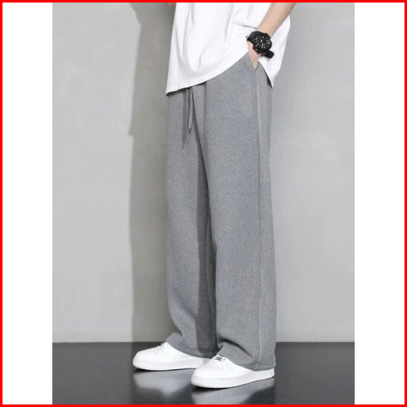 Celana Joger Panjang Baggy Loosepants Pria Wanita Bahan Katun Fleece Warna Hitam Dan Graymarl