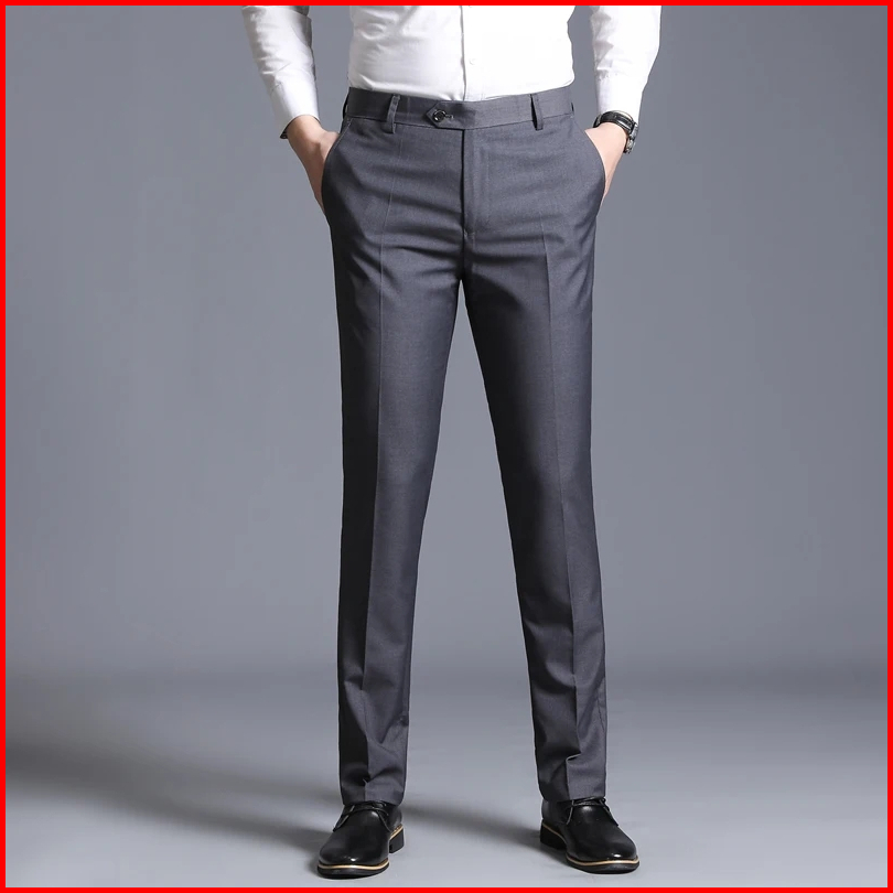 Celana Kantor Formal Pria Slim Fit Bahan Wool Premium Hitam Abu Panjang Size 27-38