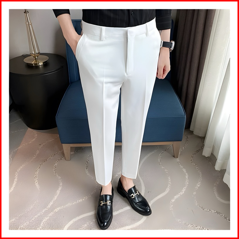 Celana Kantor Formal Pria Slimfit Bahan Dasar Kain Woll Premium Putih Hitam