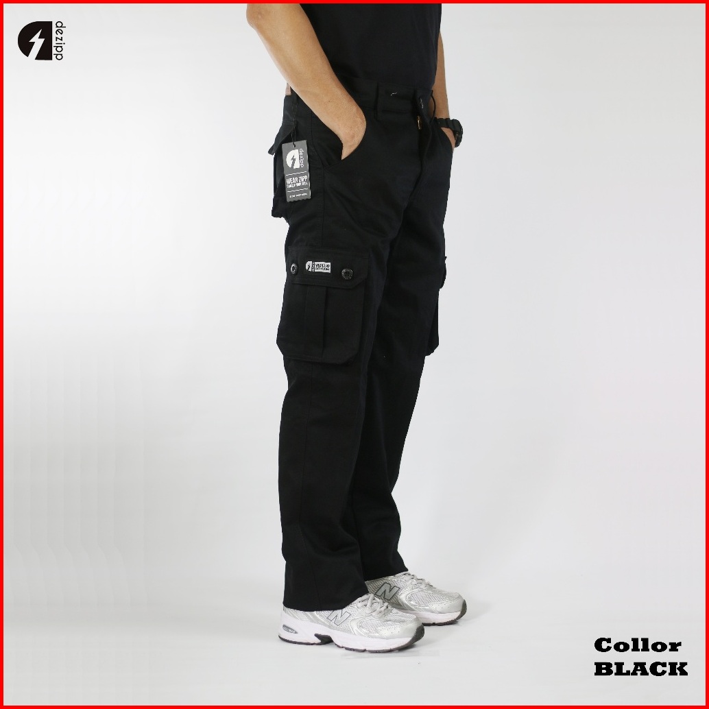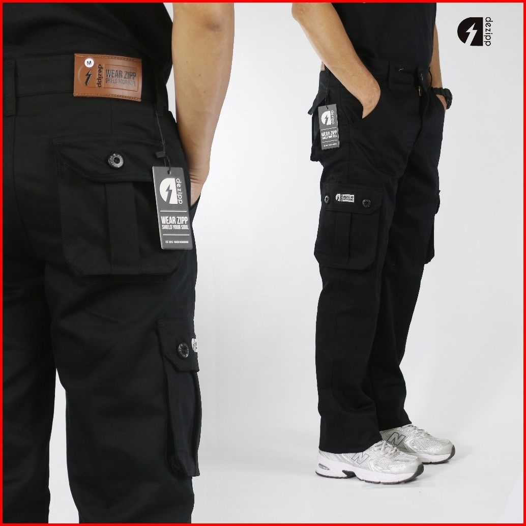 Dezipp Original Celana Cargo Panjang Pria Celana Kargo Celana Gunung Outdoor Slimfit Warna Hitam Ukuran 28-42