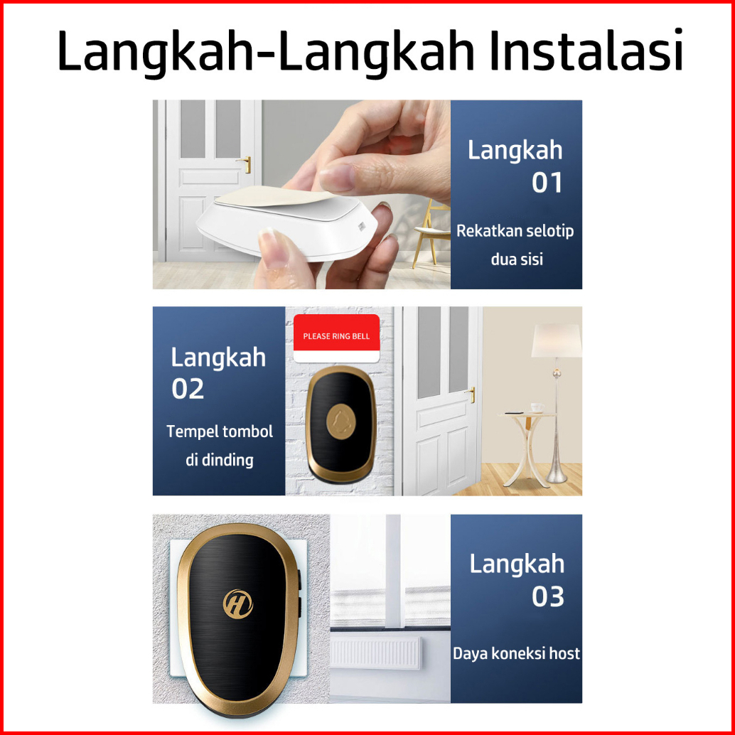 2024 Bel Rumah Tanpa Kabel Bel Pintu Rumah Wireless Waterproof Lampu Rgb 38 Ringtone 1 Receiver