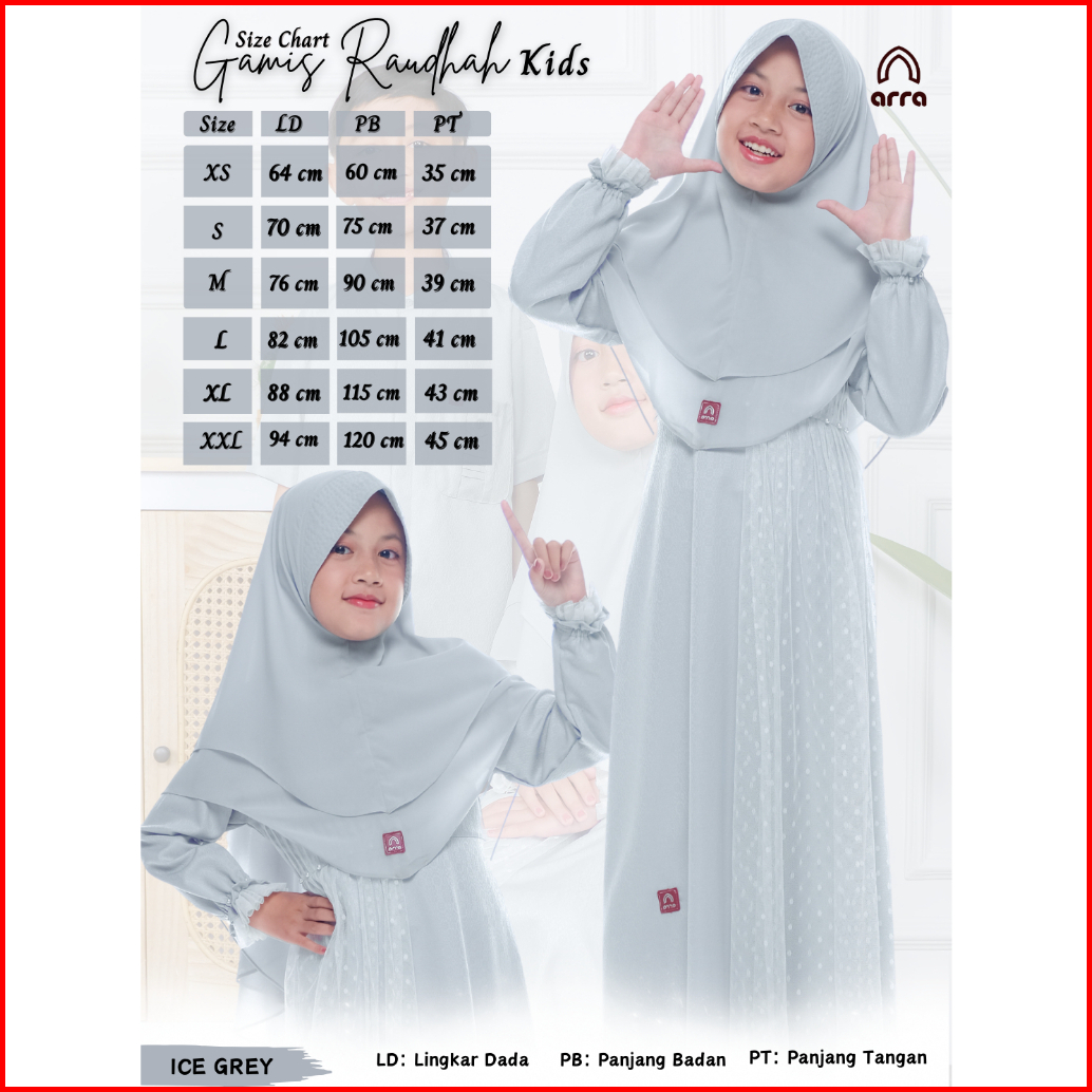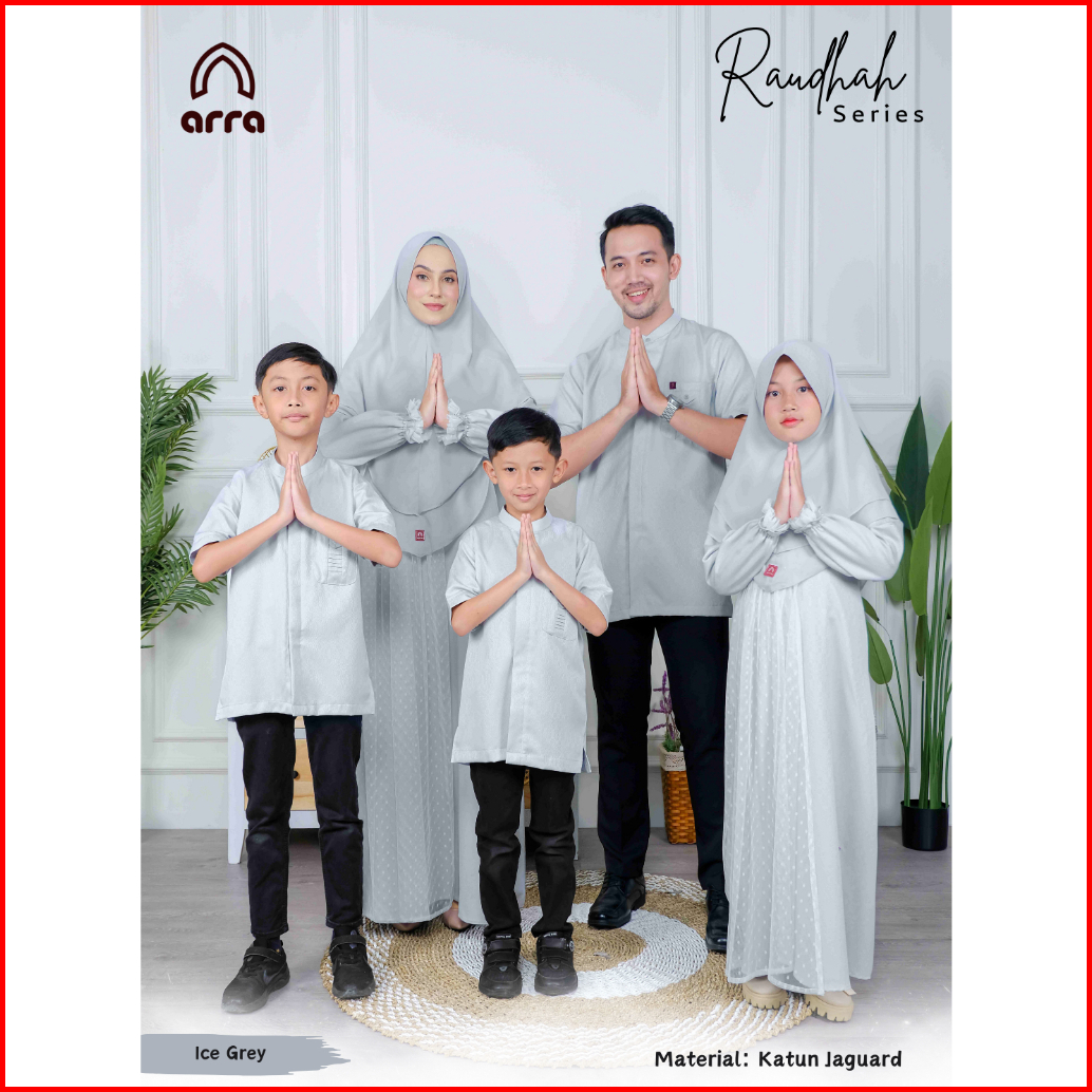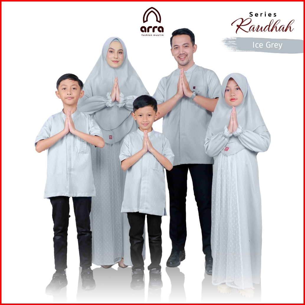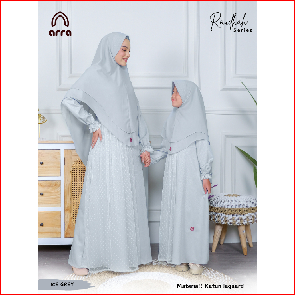 Arra - Sarimbit Keluarga Series Raudhah Koko Gamis Kerudung Warna Ice Grey Bahan Jaquard
