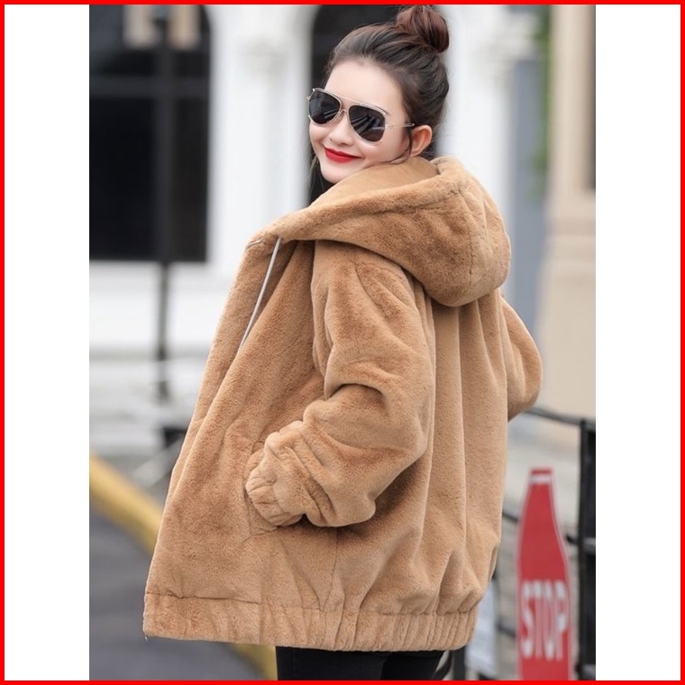 Hoodie Bulu Wanita Bulu Kucing Jaket Bulu Wanita Musim Dingin Jaket Sherpa Bulu Wanita