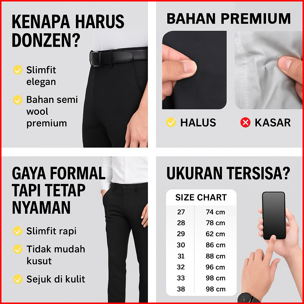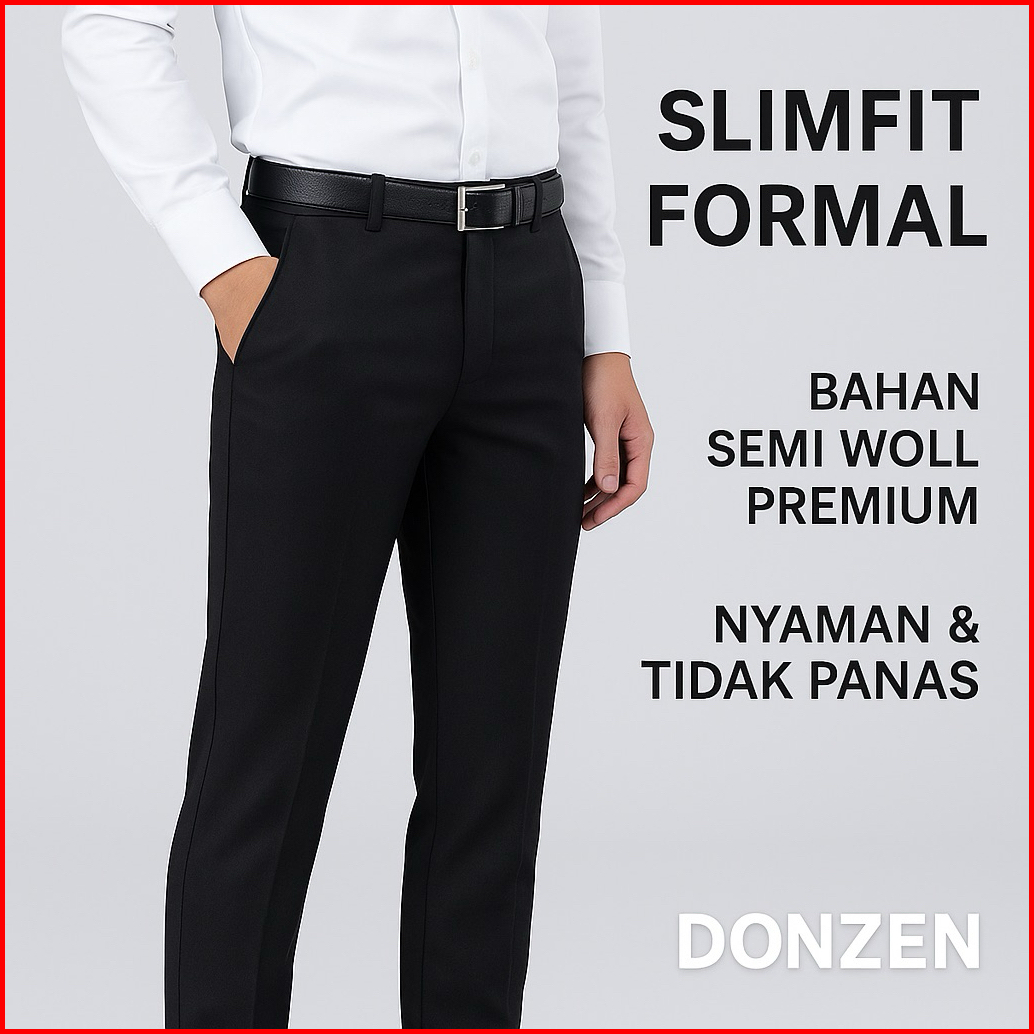 Donzen Celana Bahan Slimfit Pria Celana Kantor Formal Kerja Semi Woll Premium Adem Rapi