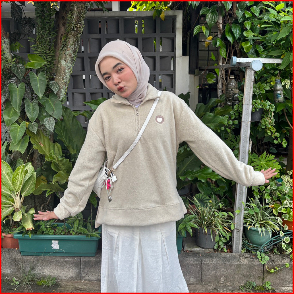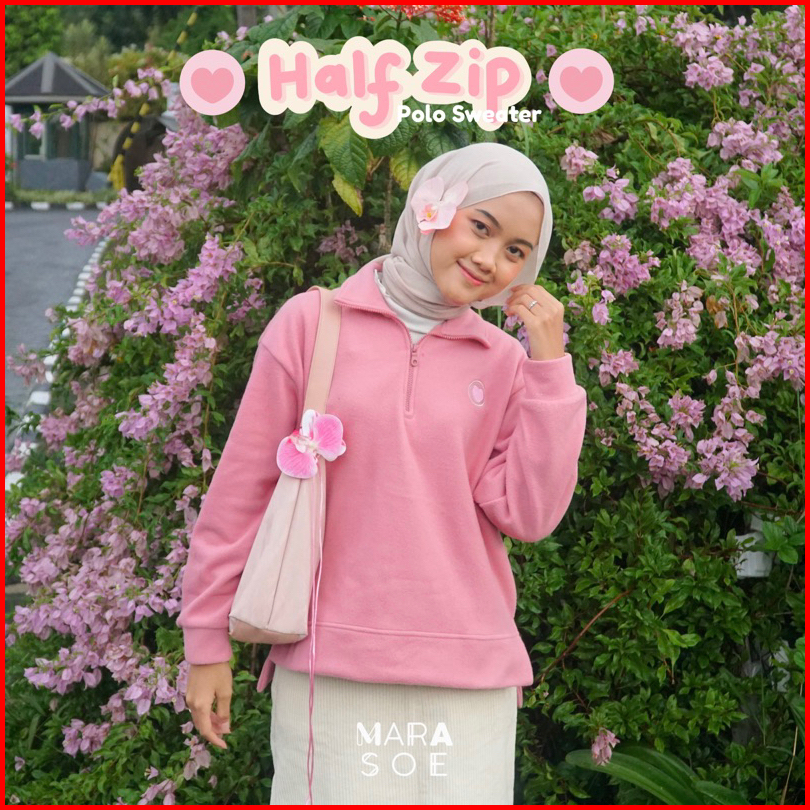Marasoe Half Zip Sweater Polo - Sweater Zipper Sweater Velvet Sweater Halfzip Polo Berkerah Sweater Korean Oversized Swe
