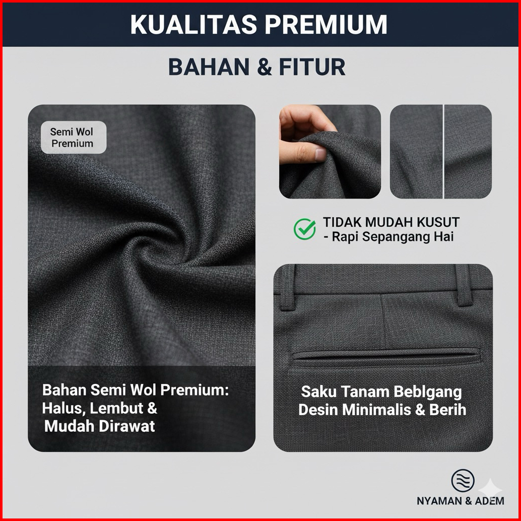 Celana Kerja Pria Slimfit Bahan Semi Wol Premium Adem Tidak Mudah Kusut Ukuran 2738