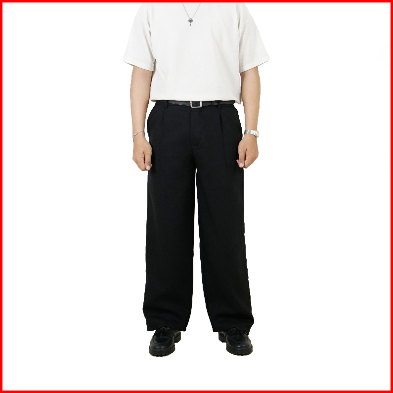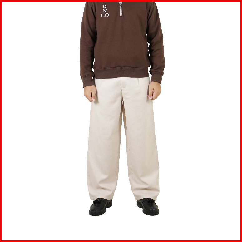 Jinsyou - Celana Trouser Wide Pants Pria Hitam Cream Coffe Loose Relaxed Pinggang Karet