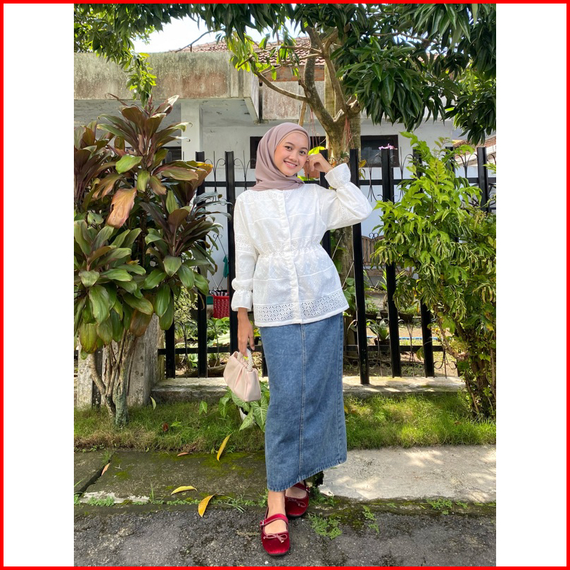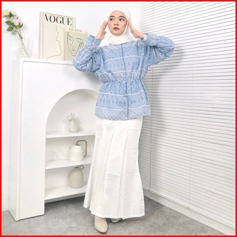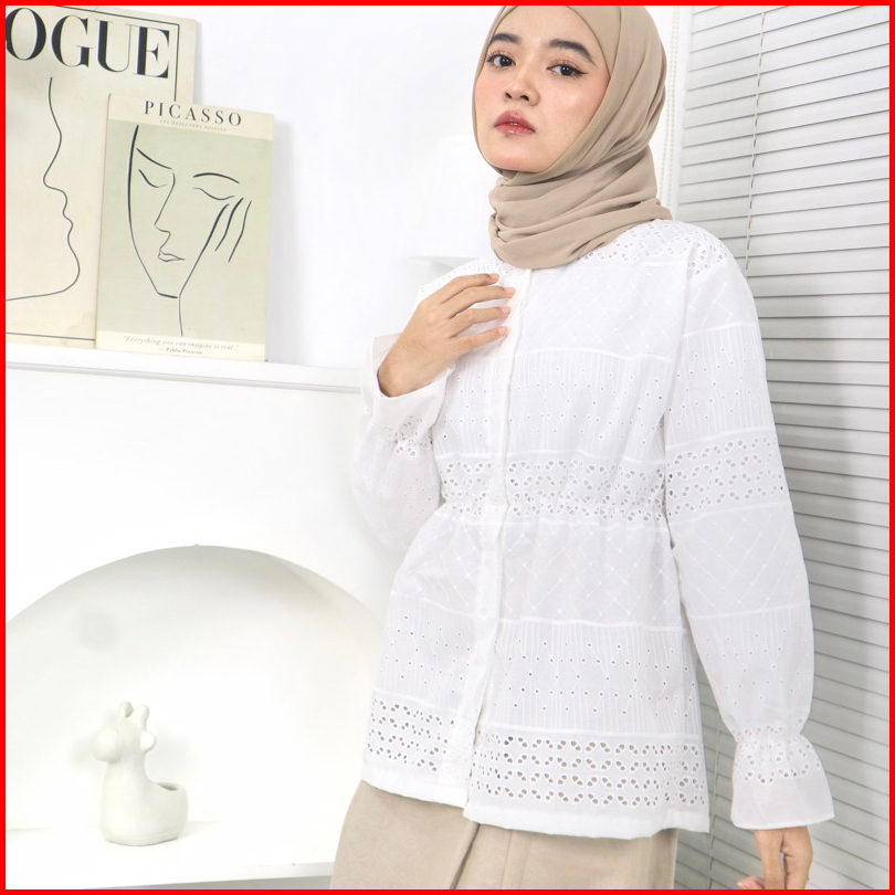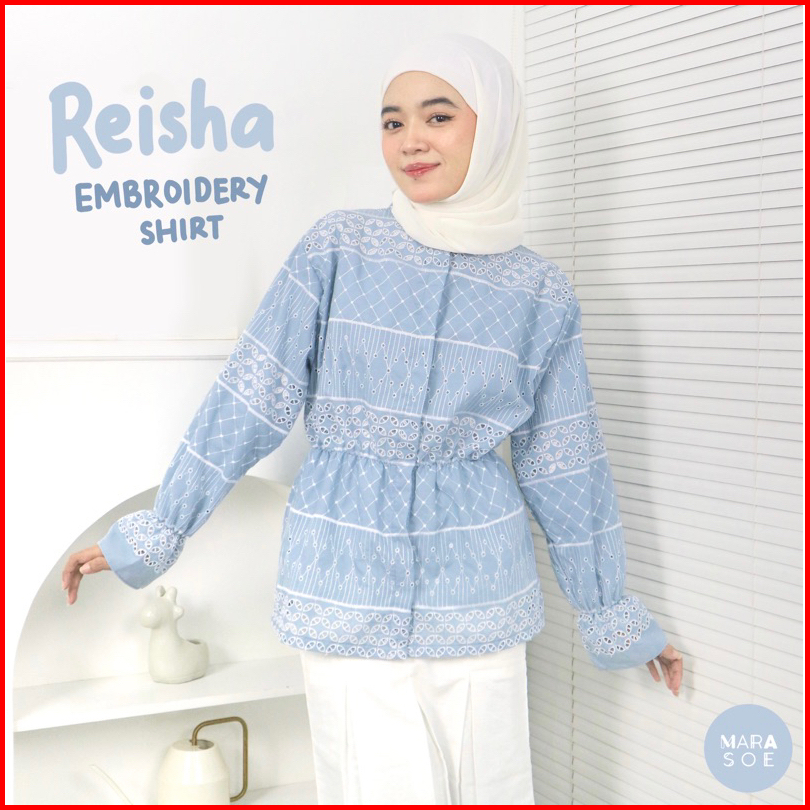 Marasoe Reisha Embroidery Shirt - Kemeja Katun Bordir Blouse Shirt Kemeja Lace Brukat Bordir Baju Lebaran