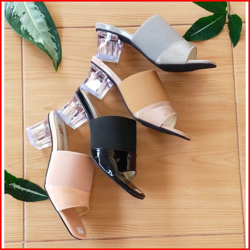 Sandal Kokop Hak Kaca Glosy Karet 5cm