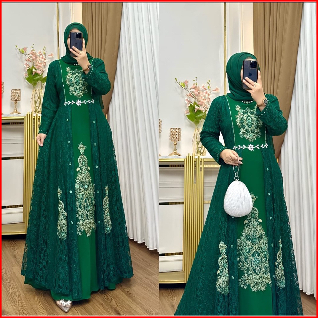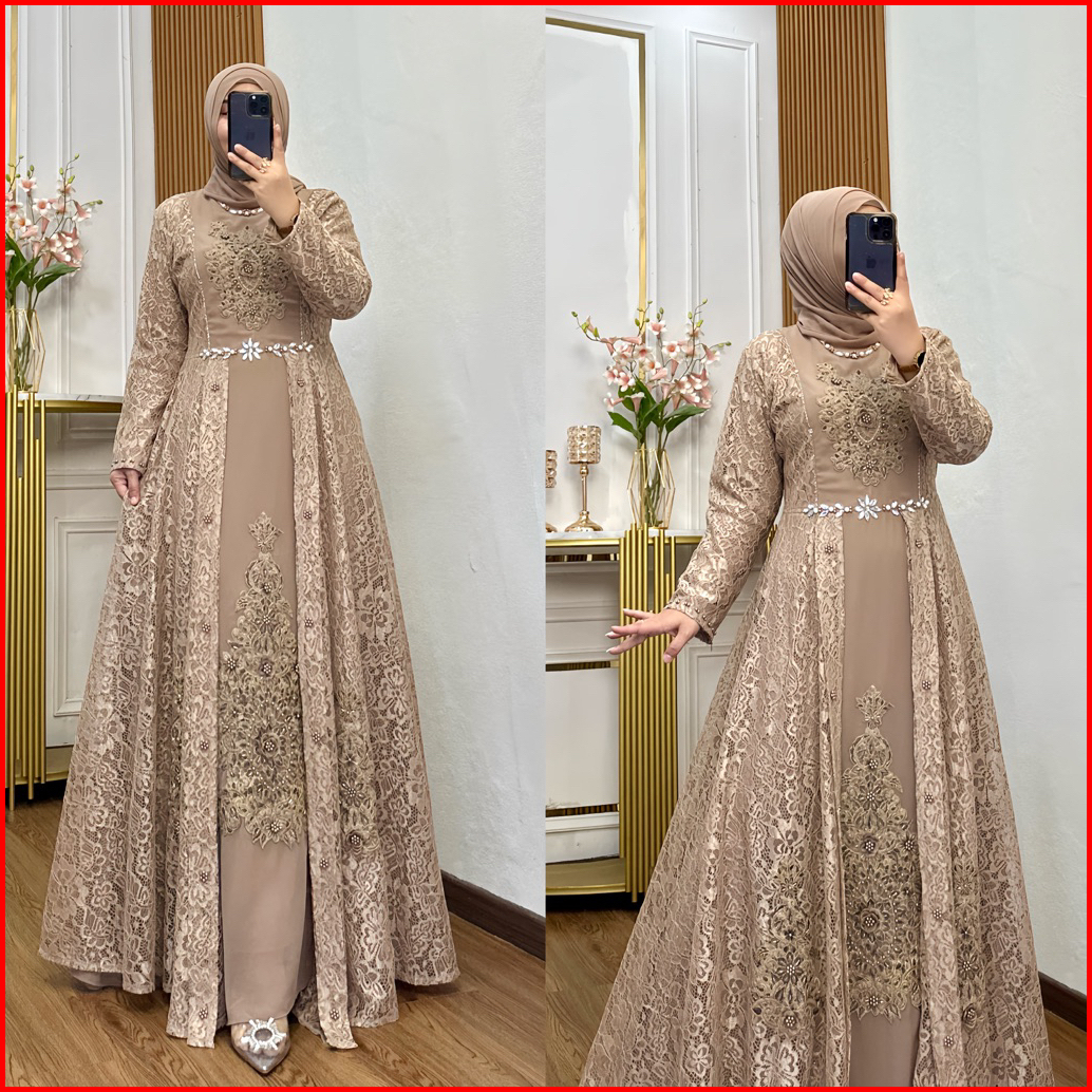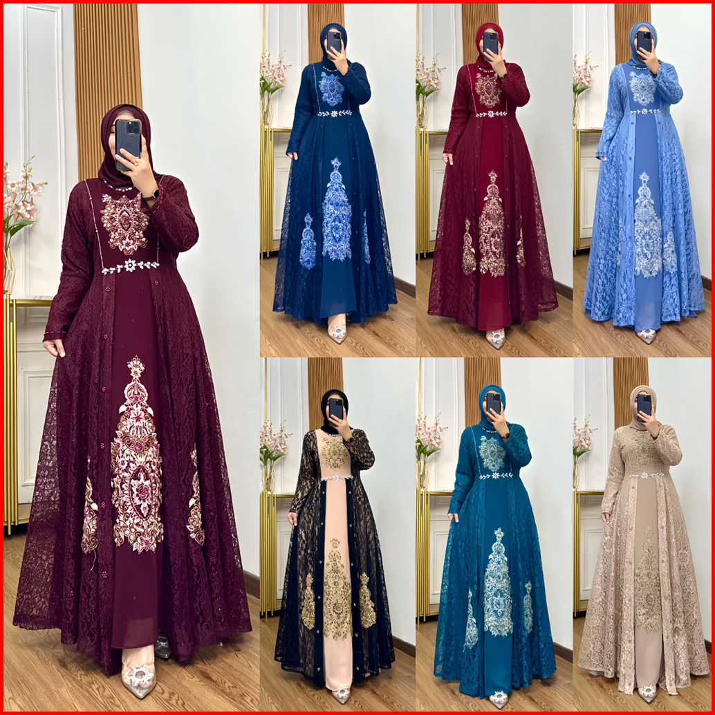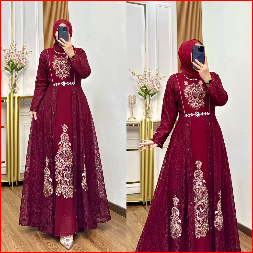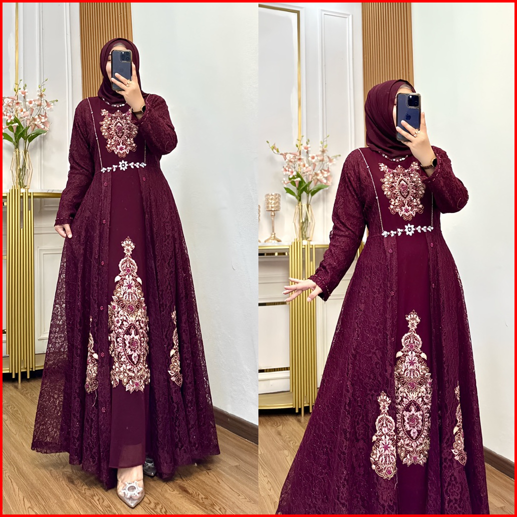 Dijamin Realpict 100 New Pict Gamis Pesta Brukat Premium Kombinasi Ceruty Bordir Gamis Terbaru .