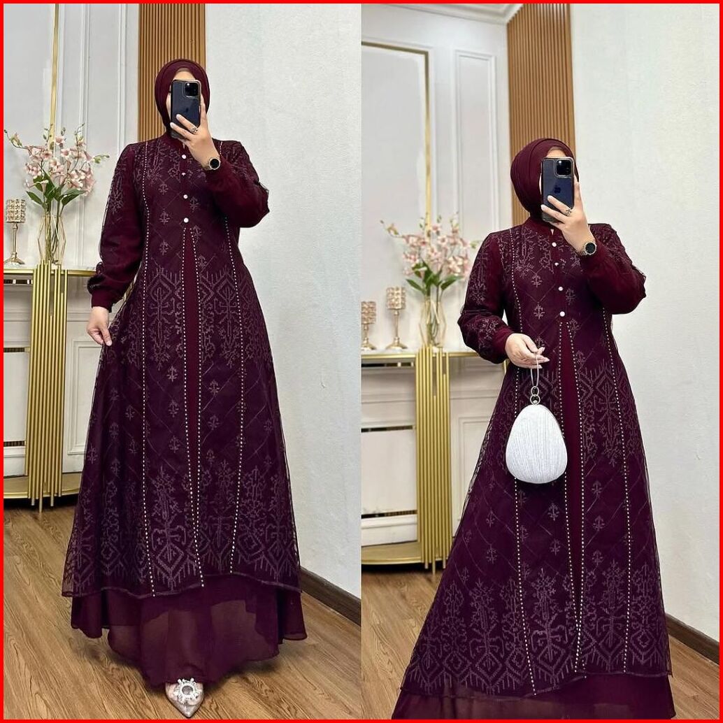 Anya Dress Ceruty Brukat Swarovski Gamis Kekinian Muslim Wanita Ld 90 - 140 Gamis Lebaran 2026