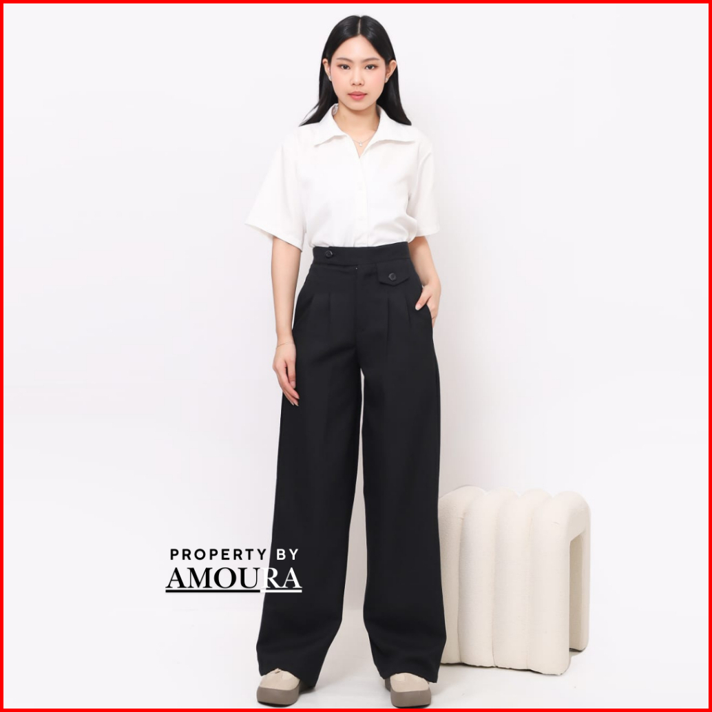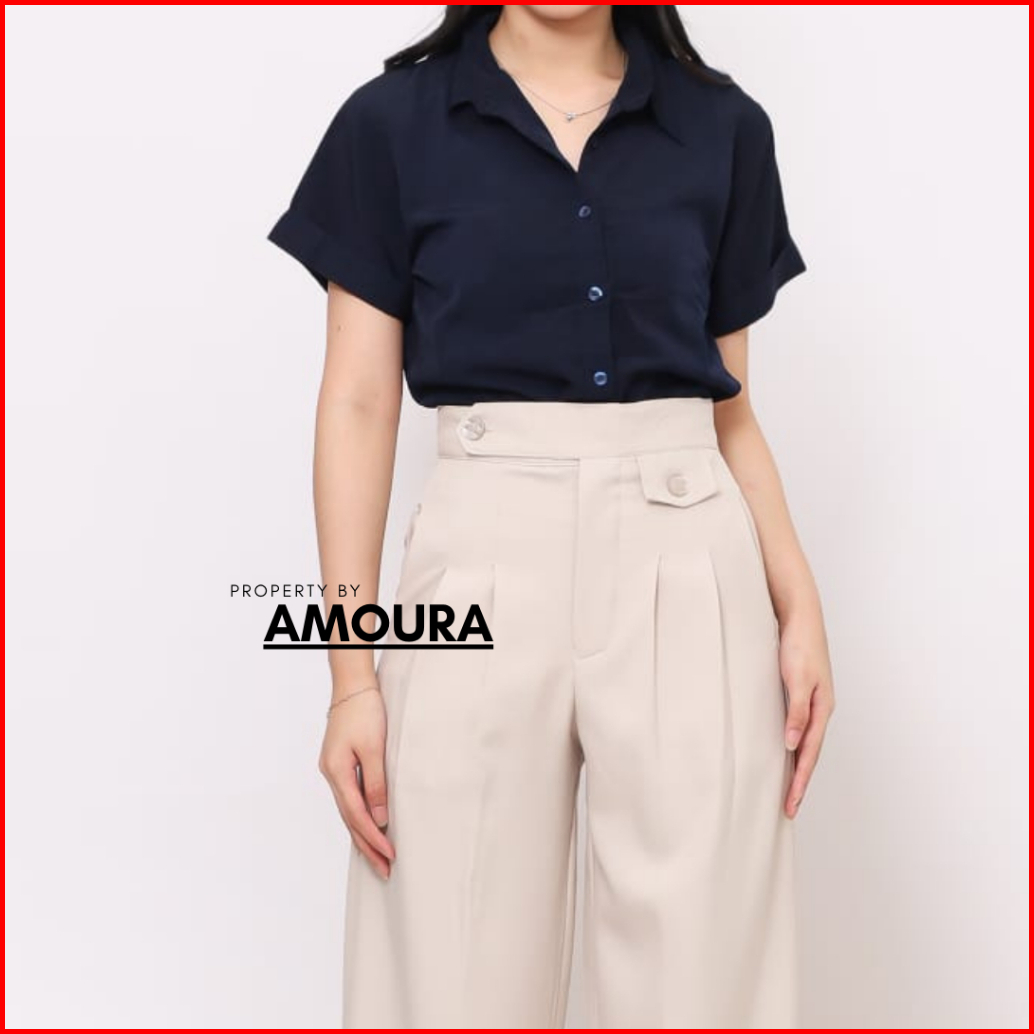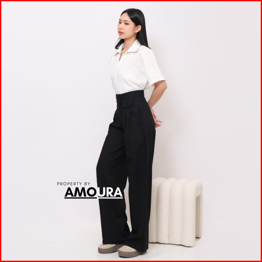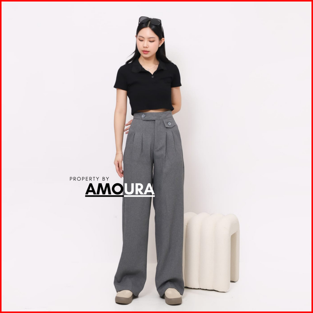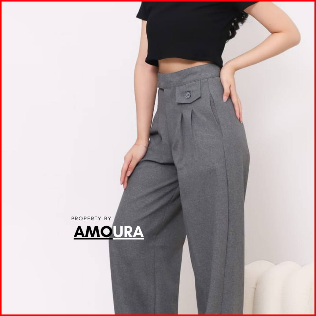 Amoura - Celana Wanita Highwaist Panjang Kulot Bahan Anti Kusut Loose Pants Trouser Basic Kerja Korean Style
