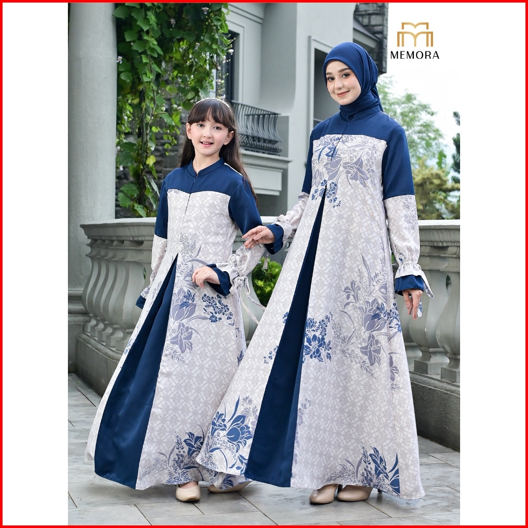 Sarimbit Lebaran 2025 Series Slavina Navy By Memora - Baju Couple Pasangan Lebaran 2025 - Original Amanah - Baju Gamis L
