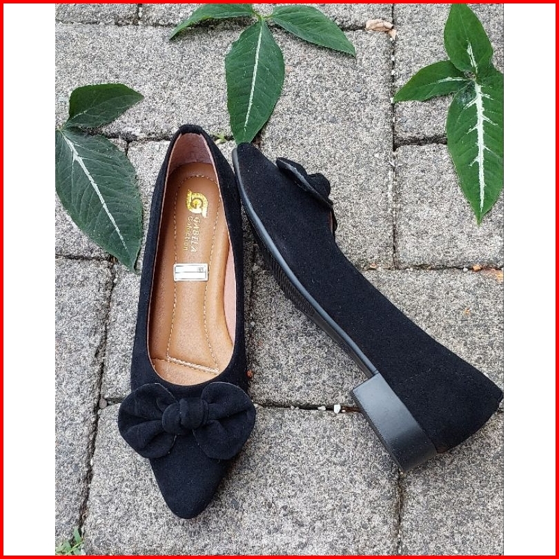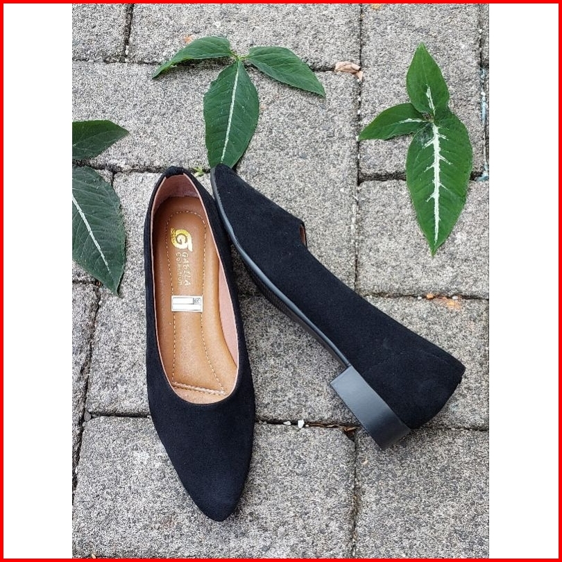 Sepatu Pantoval Kerja Bludru Hak 3cm Anti Licin