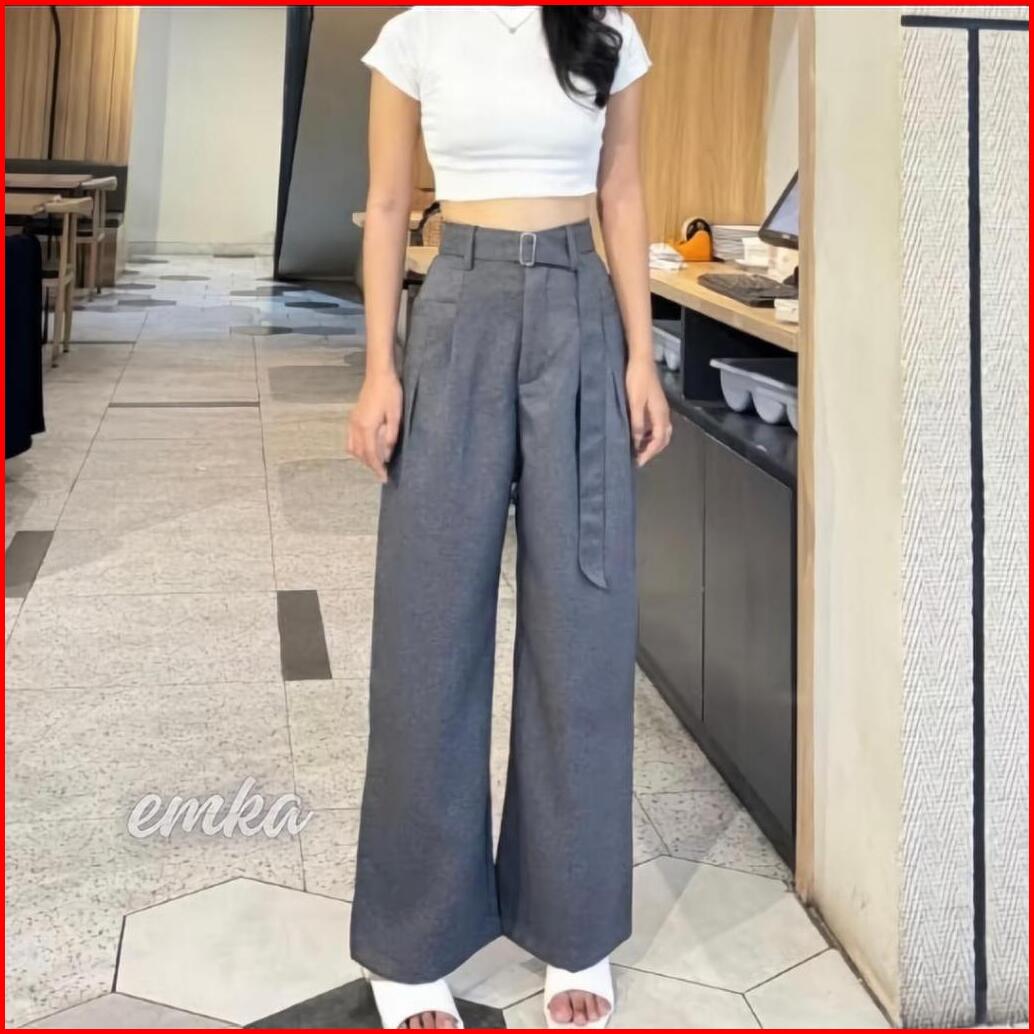 Emkafashion - Obi Pants - Celana Highwaist Trousers Loose Pants - Celana Kulot Kantor Formal Anti Kusut Casual