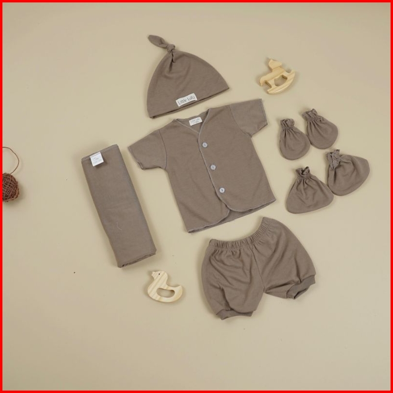Little Lulla - Complete Baby Short Set Paket Lahiran Berisi Bedong Topi Sarung Tangan Kaki Baju Setelan Pendek Bayi Baru