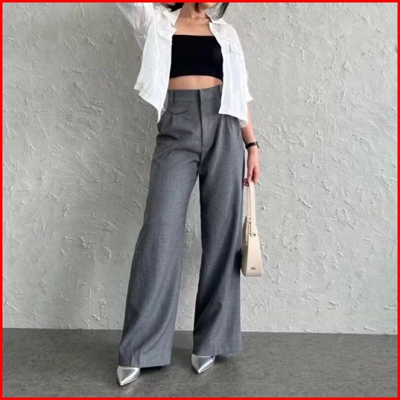 Oro Pants Celana Wanita Highwaist Panjang Kulot Bahan Anti Kusut Loose Pants Trouser Basic Kerja Korean Style