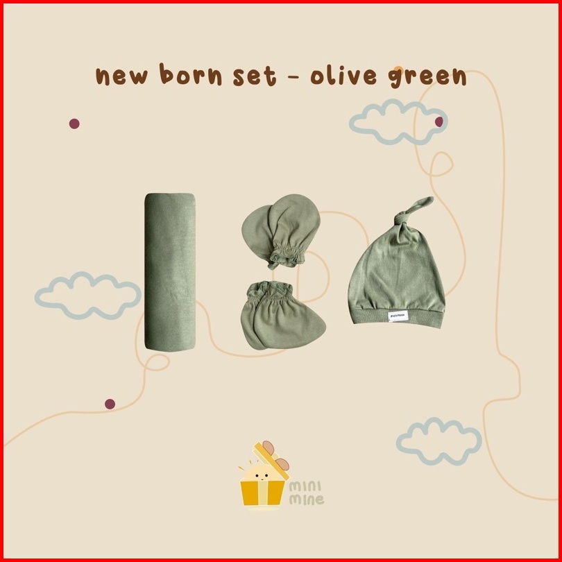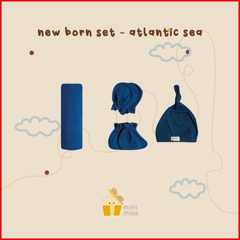 Minimine - New Born Set Swaddle Knot Hat Mitten And Botties Berisi Bedong Topi Dan Sarung Tangan Dan Kaki Bayi Baru Lahi