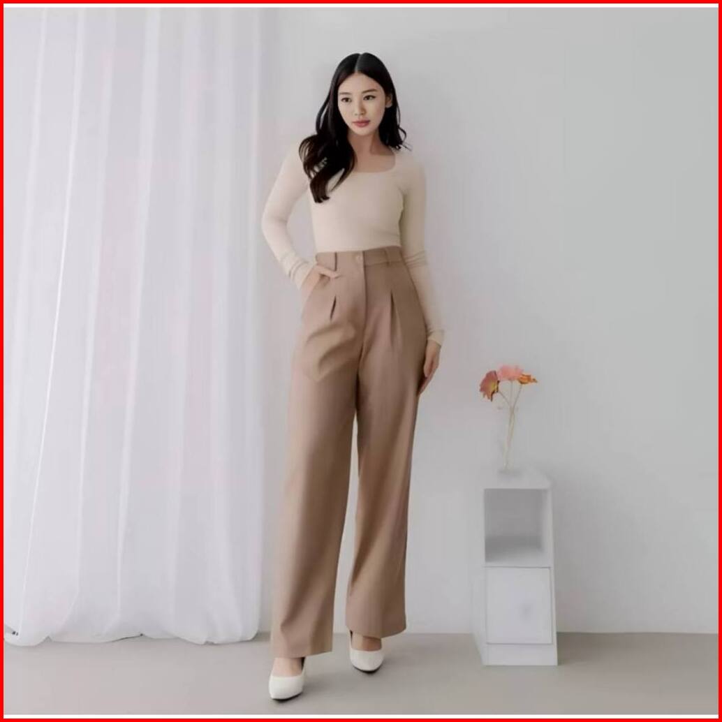 Zs - Viona Pants - Celana Kulot Wanita - Celana Anti Kusut - Highwaist Celana Kerja Kantor Casual Loose Pants Trouser Pr