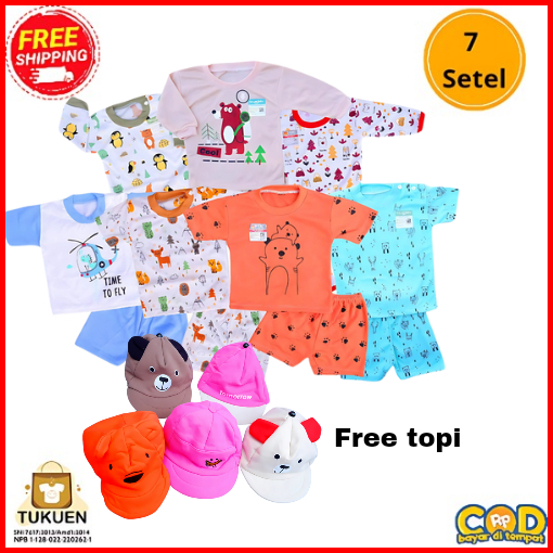 - 100rb 7 Setel Free Topi Setelan Bayi 3-15 Bulan Free Topi