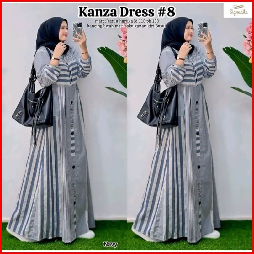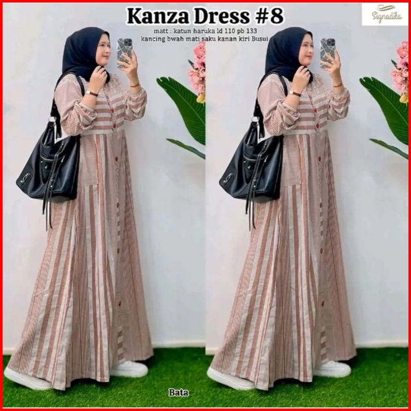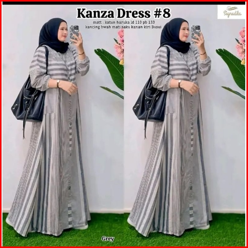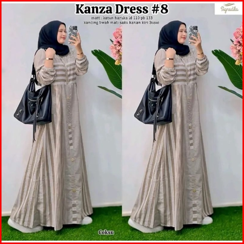 Gamis Haruka Garis Kanza Dress Katun Adem Nyaman