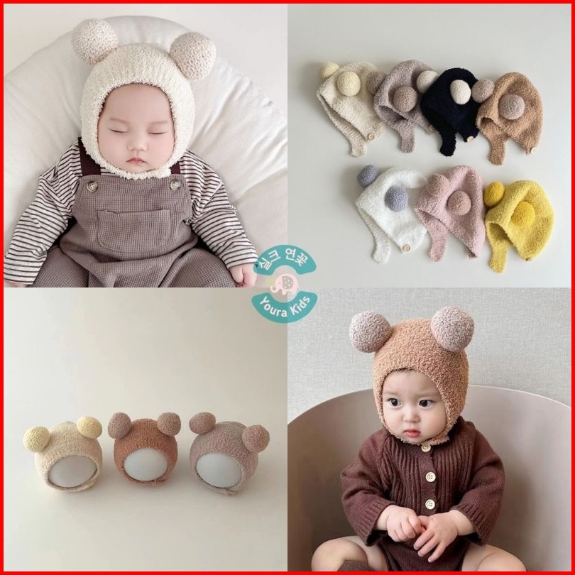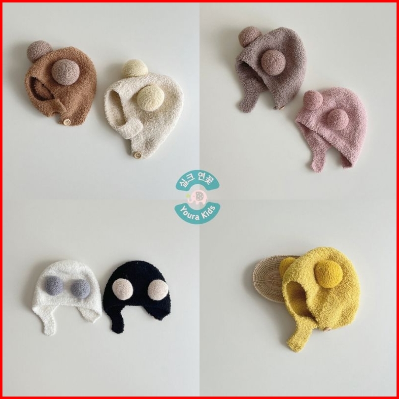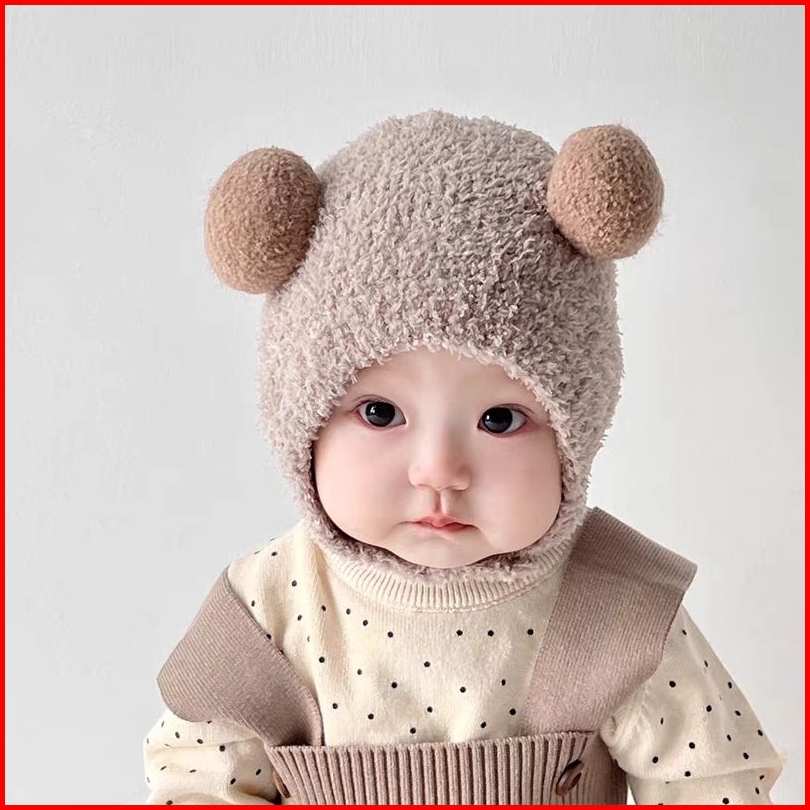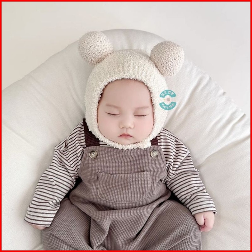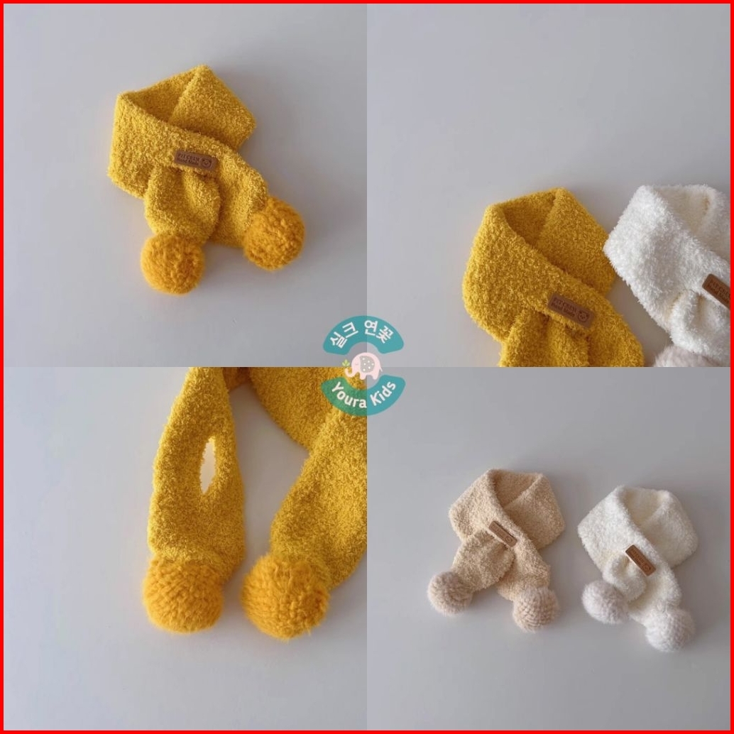 2bln - 2thn Topi Plush Scarf Anak Bayi Batita-big Ball Pom2- -korean Model