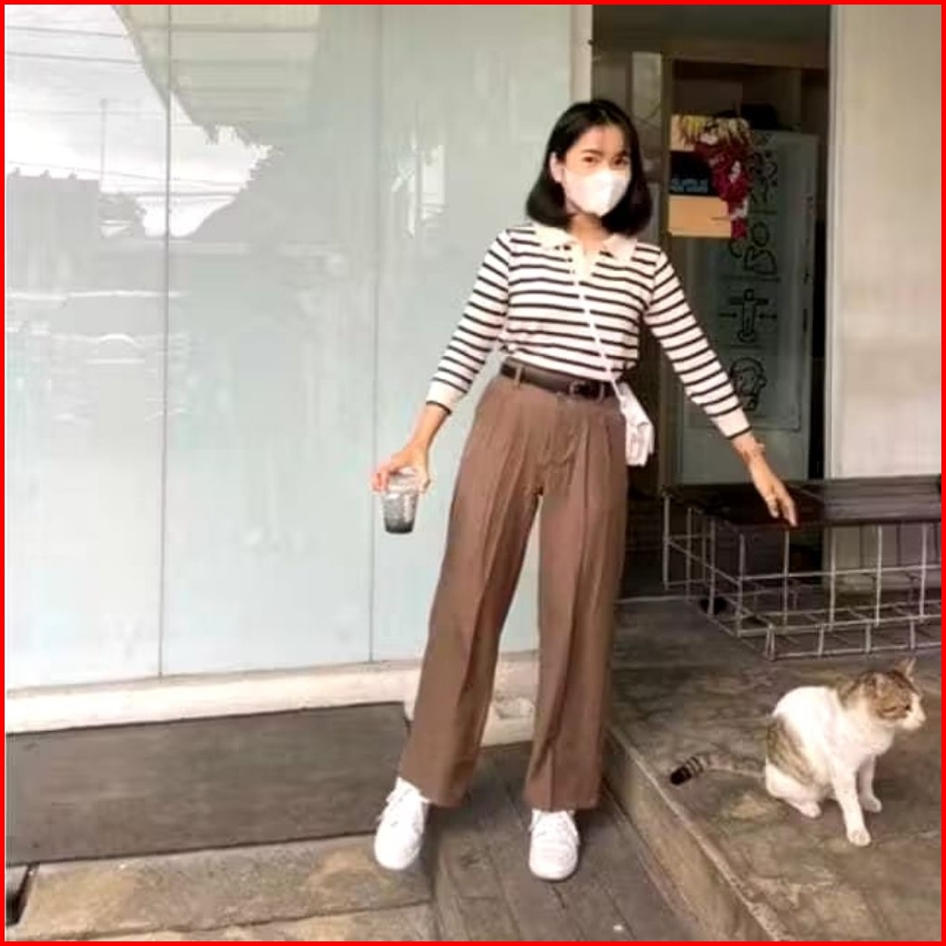 Celana Highwaist Loose Pants Trousers Celana Kerja Wanita Kantor Celana Anti Kusut Celana Kulot Wanita