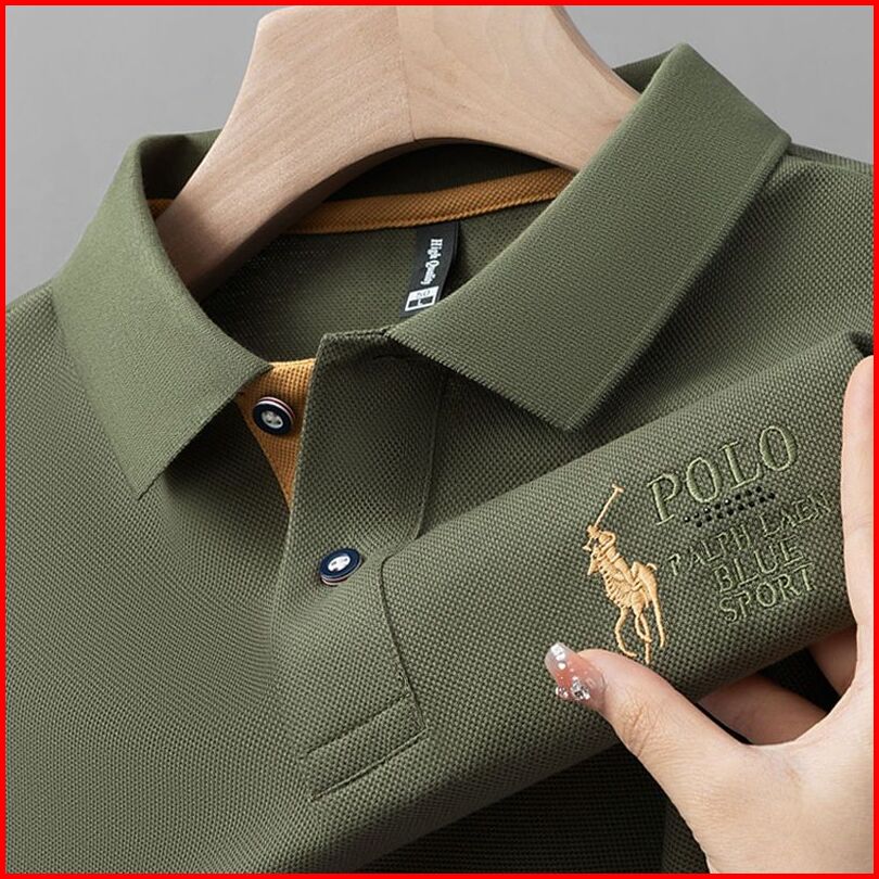 Keyboy Polo Shirt Pria Korean Style Striped Short Sleeve Polo Shirt Dewasa Biru Lapel Collar Casual Tops Plain Tshirt Fa