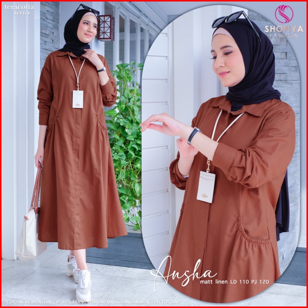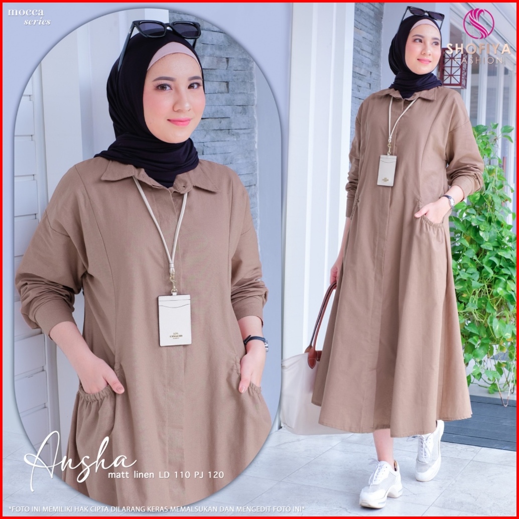 Ansha Gamis Midi Wanita Linen Premium Nyaman