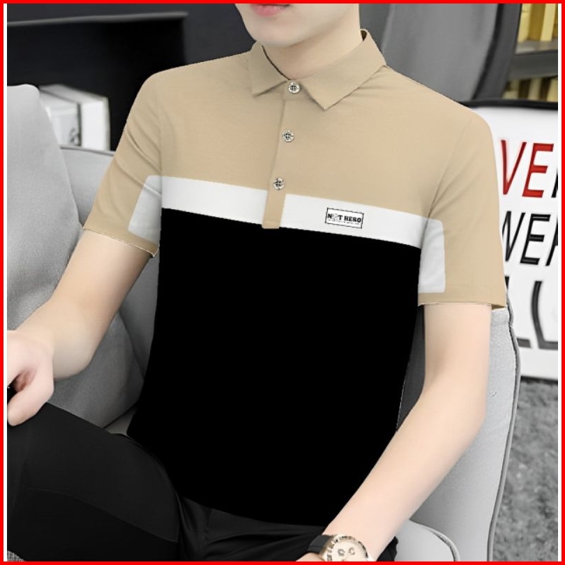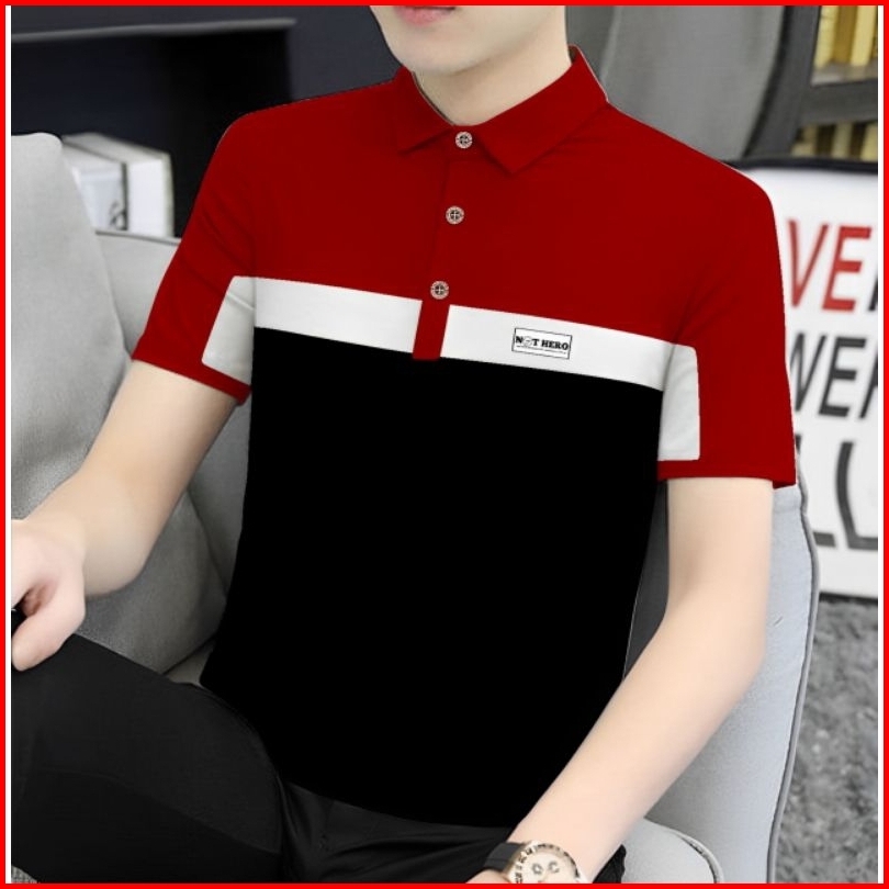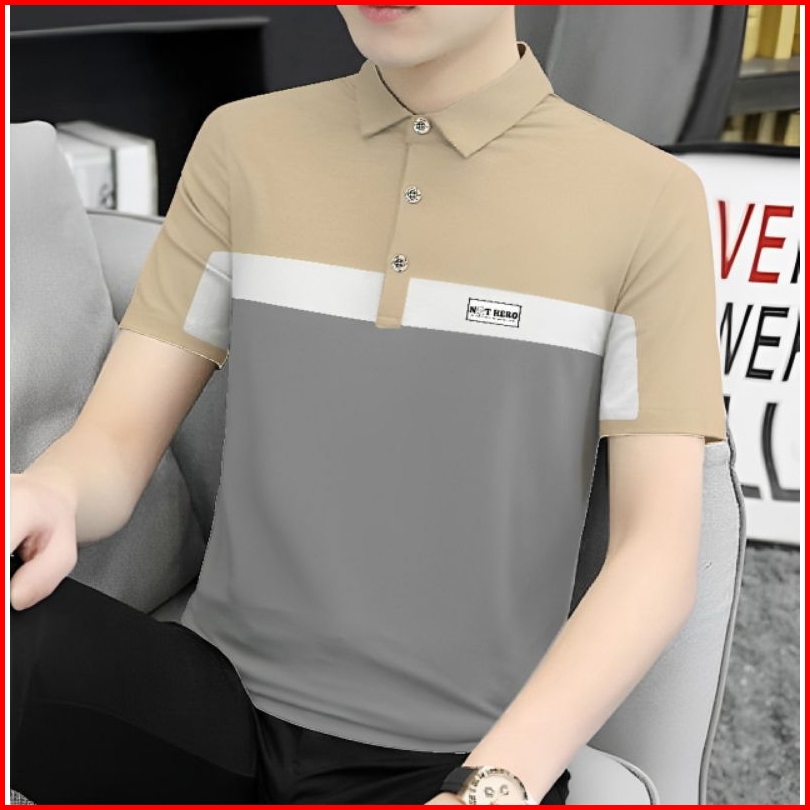 Terlariss Kaos Berkerah Distro Kaos Berkerah Motif Garis Casual Formal