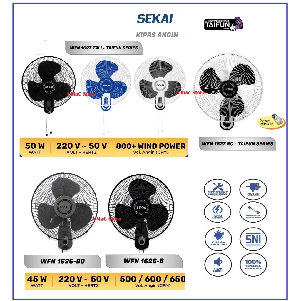 Sekai Kipas Angin Dinding WFN 1626 / 1627 - 16 Inchi Wall Fan WFN1627 WFN1626