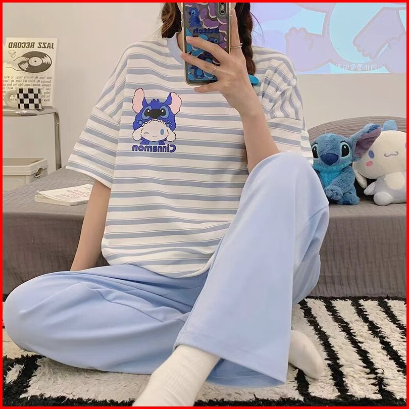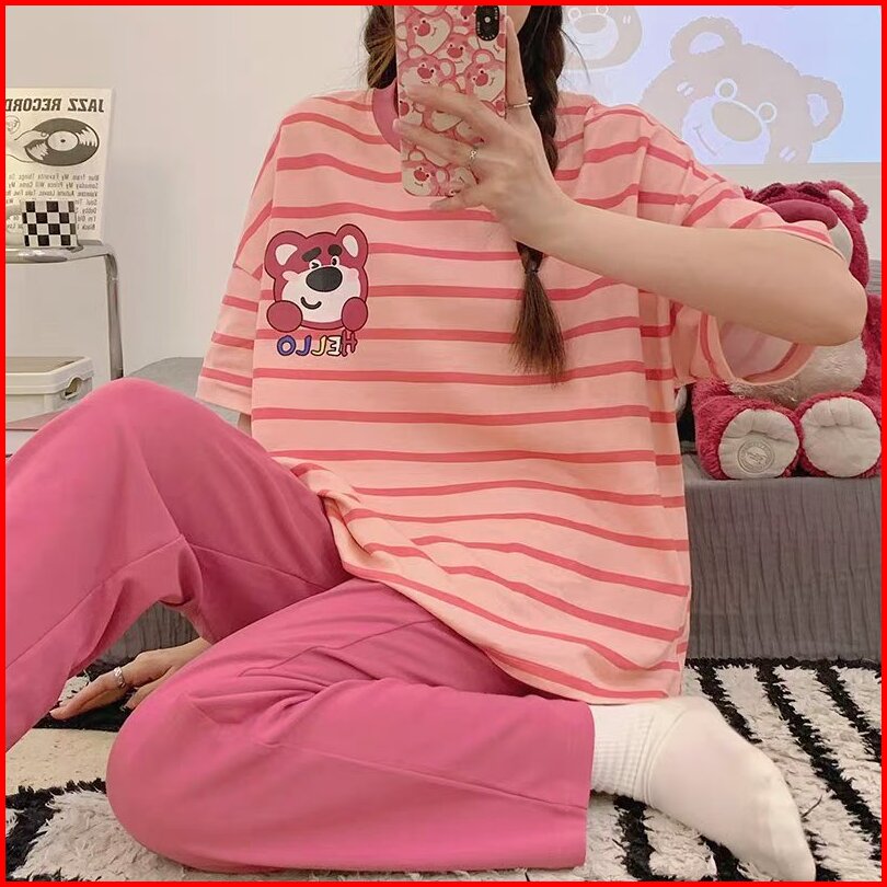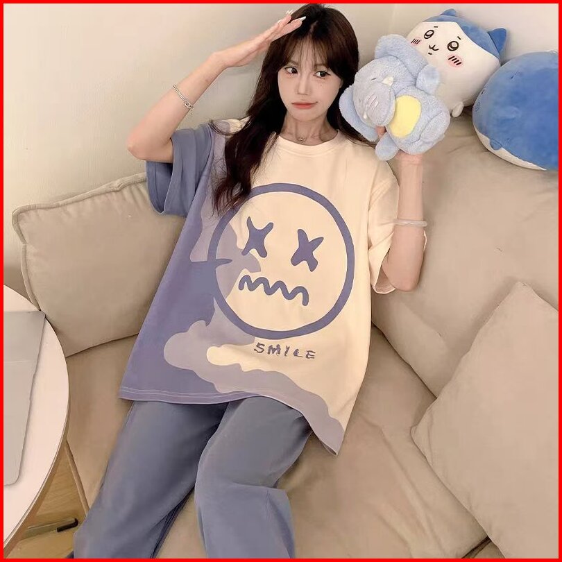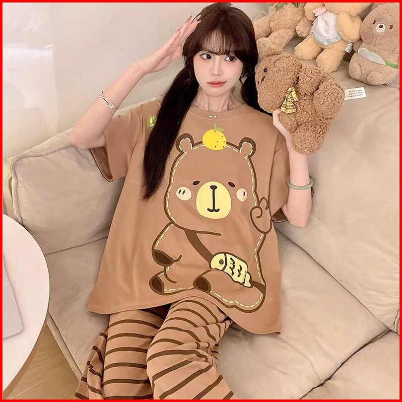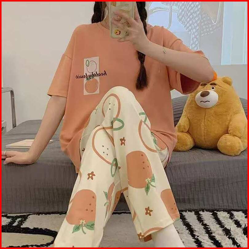 Glory 5xl Baju Tidur Wanita Lengan Pendek Celana Panjang Jumbo Piyama Pajama Import Wanita Set Jumbo