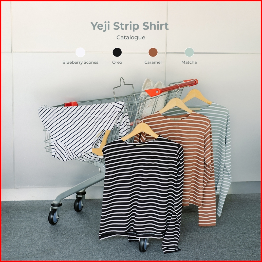 Yeppuoutfit X Maryamnurul - Yeji Strip Shirt Basic Kaos Salur Lucu Bahan Katun Casual Korean Style
