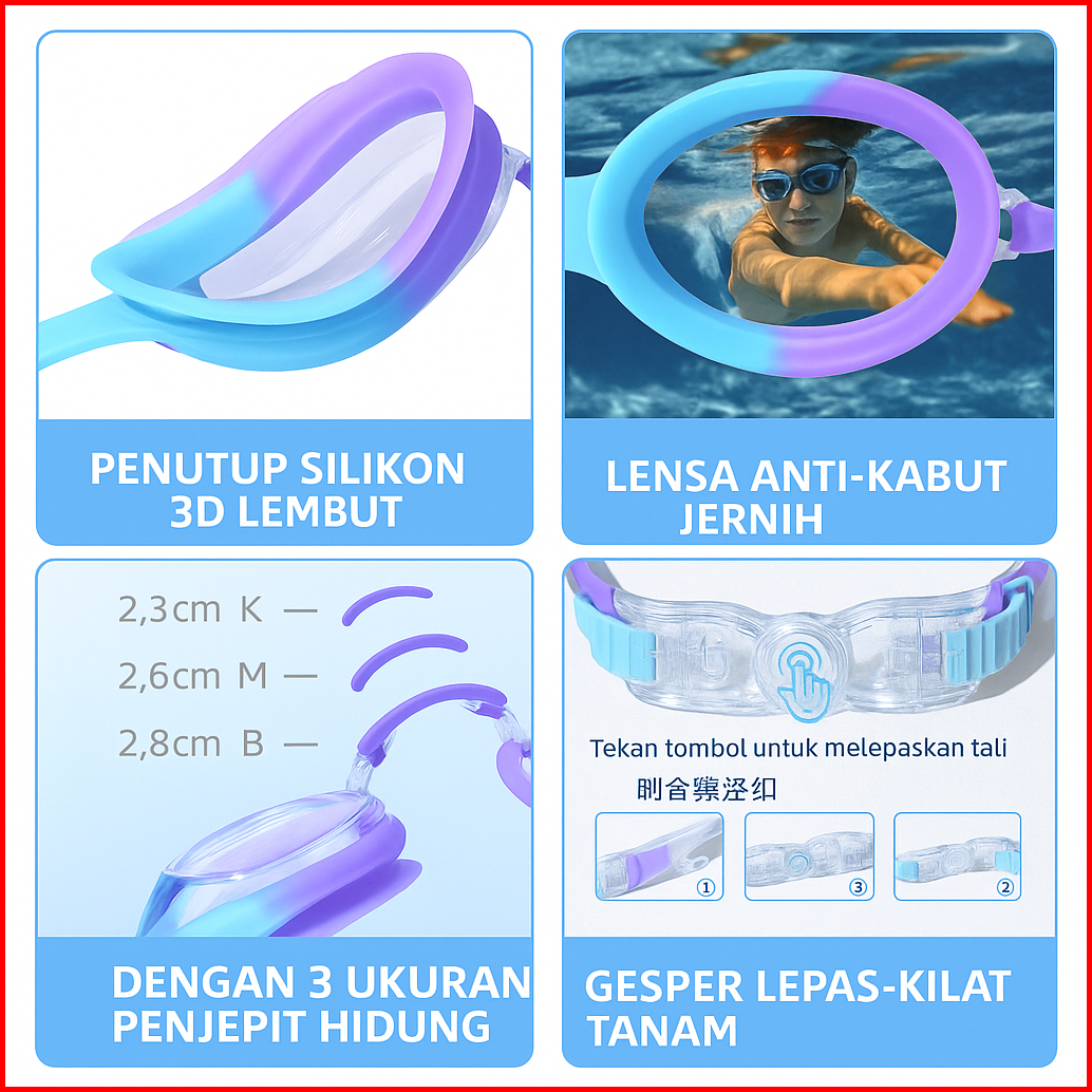 Kacamata Renang Khusus Anak Anti Fog Anti Kabut Hd Uni Sex Laki-laki Perempuan