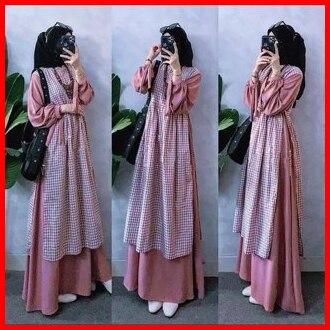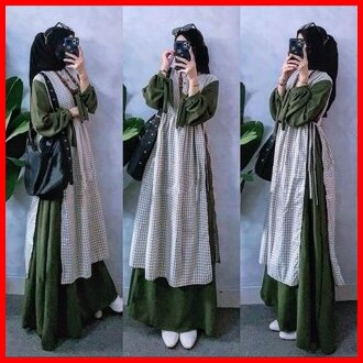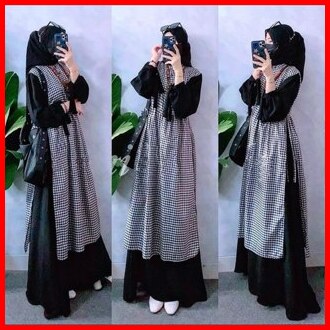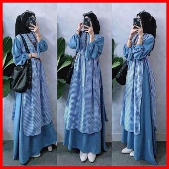 Aizura Maxi Dress Wanita Matt Katun Kotak Mix Crinkle Fashion Gamis Wanita Muslimah Terbaru