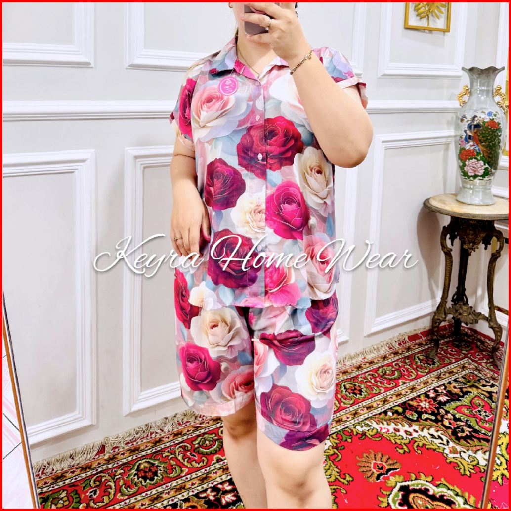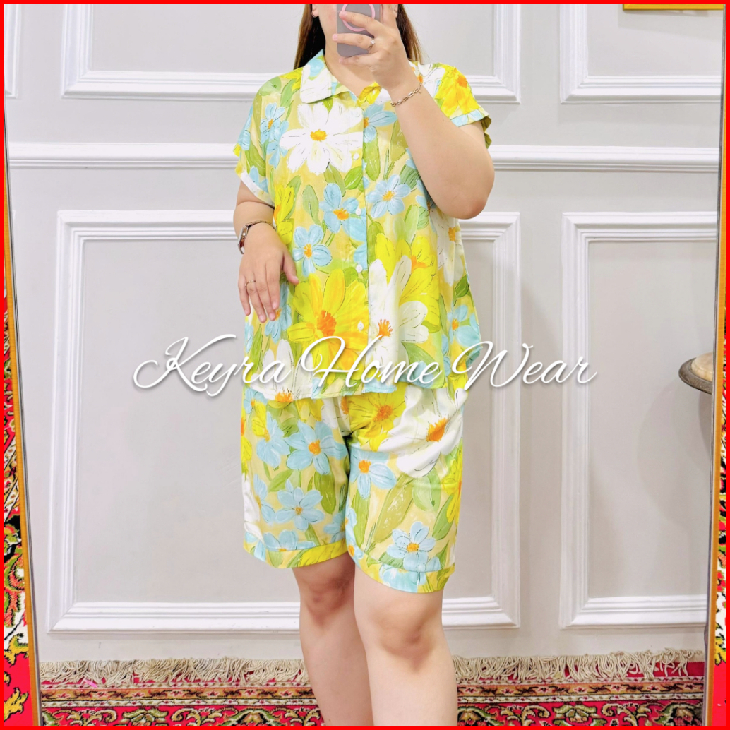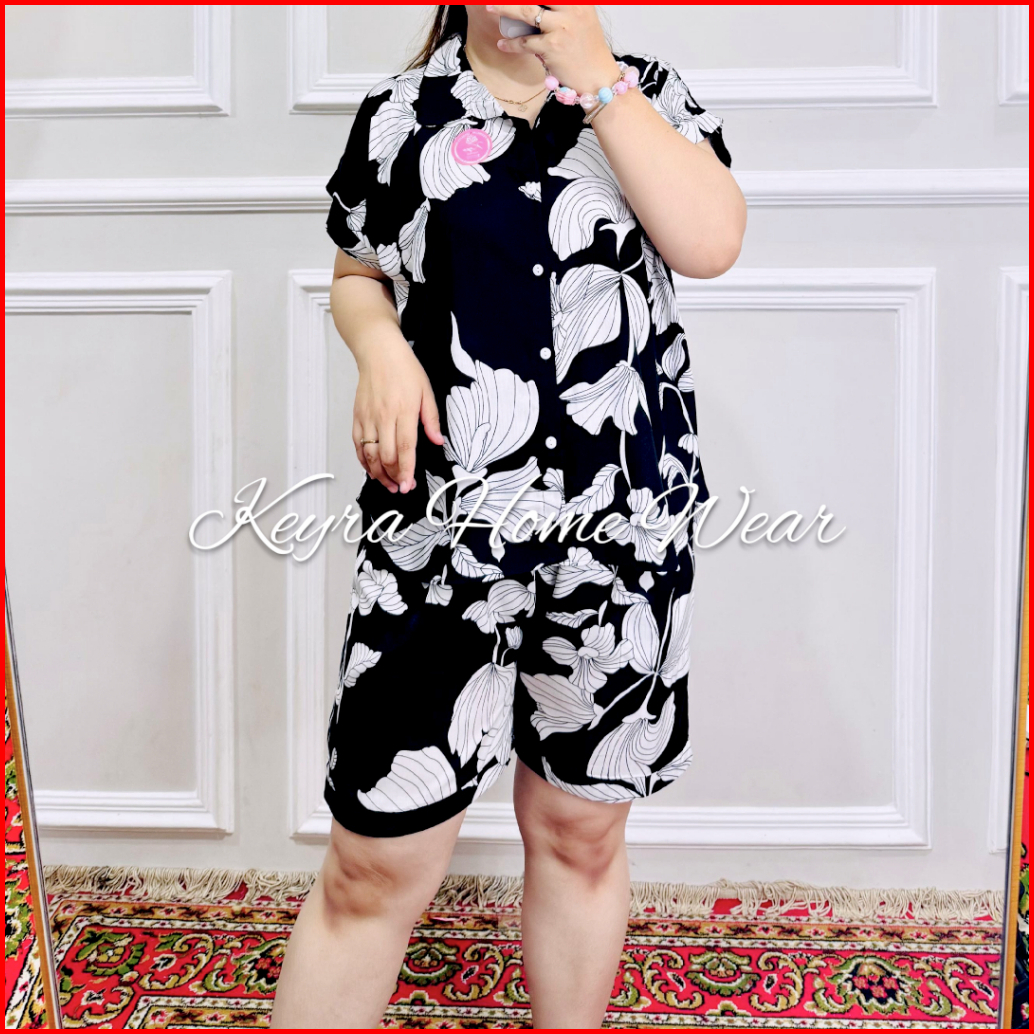 Keyra One Set Rayon Full Kancing Setelan Pendek Busui Friendly Piyama Baju Tidur Celana Pendek