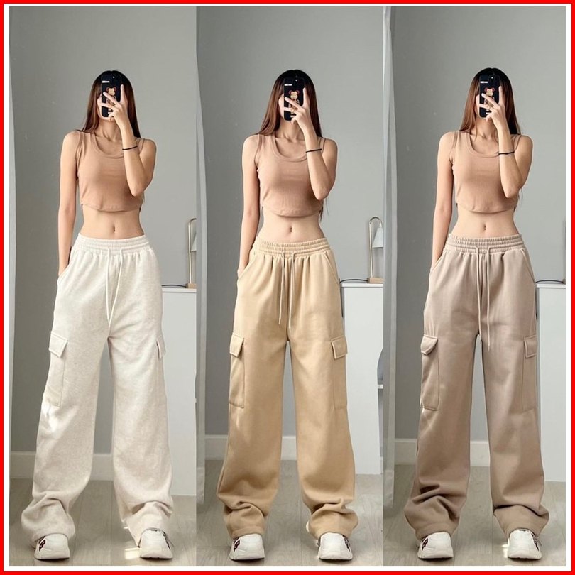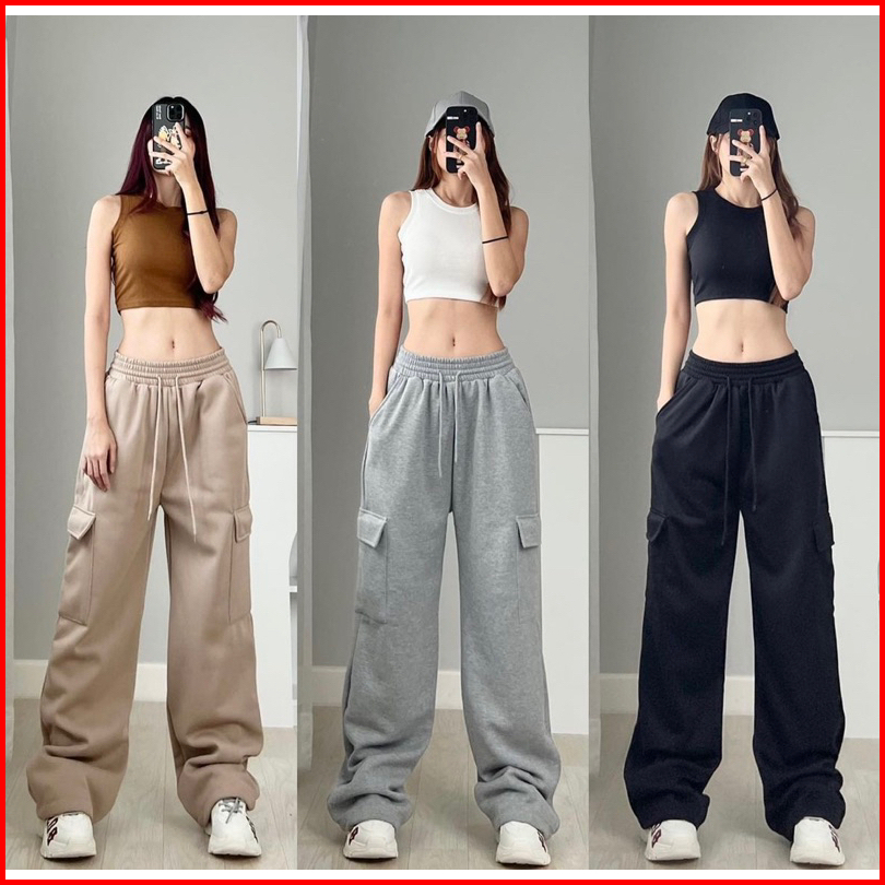 Celana Jogger Cargo Premium Korea Style Sweatpants Kargo Celana Cargo Panjang Wanita Fleece