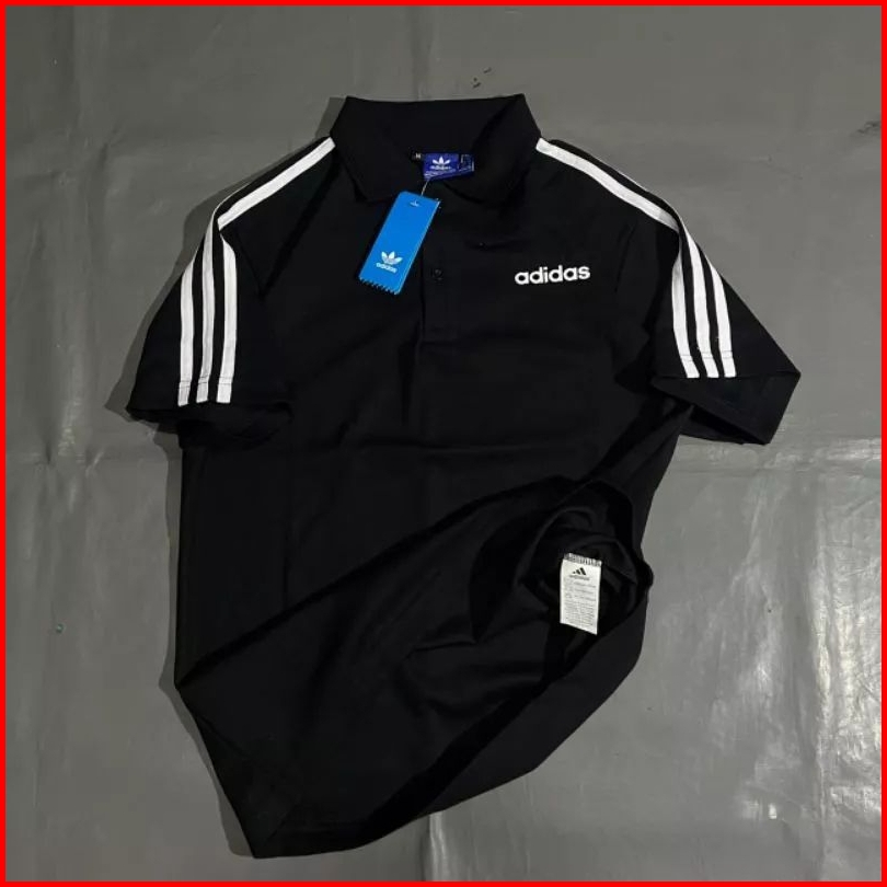 Kaos Polo Casual Black Full Tag Label Hype Fashion Pria