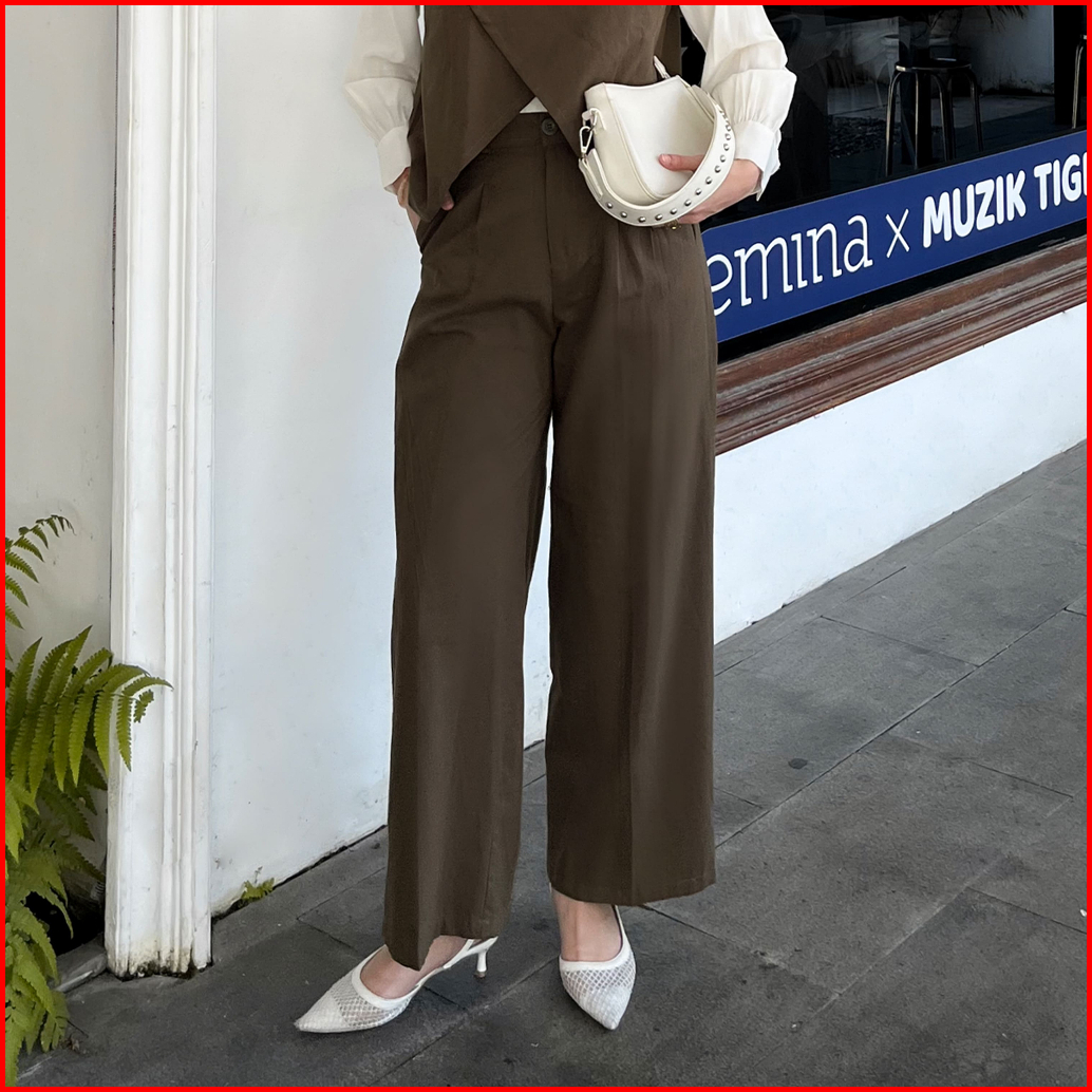 Yeppuoutfit - Yubin Pants Celana Highwaist Wanita Loose Formal Casual