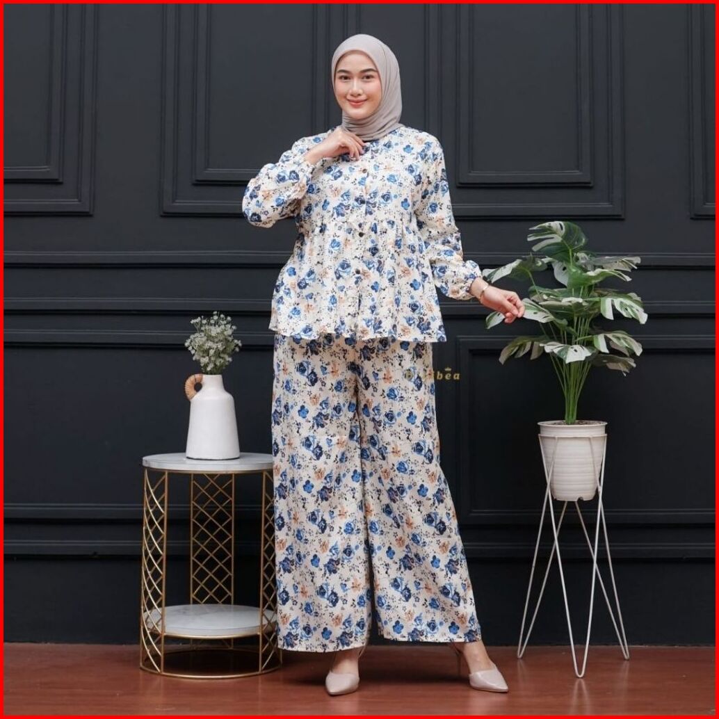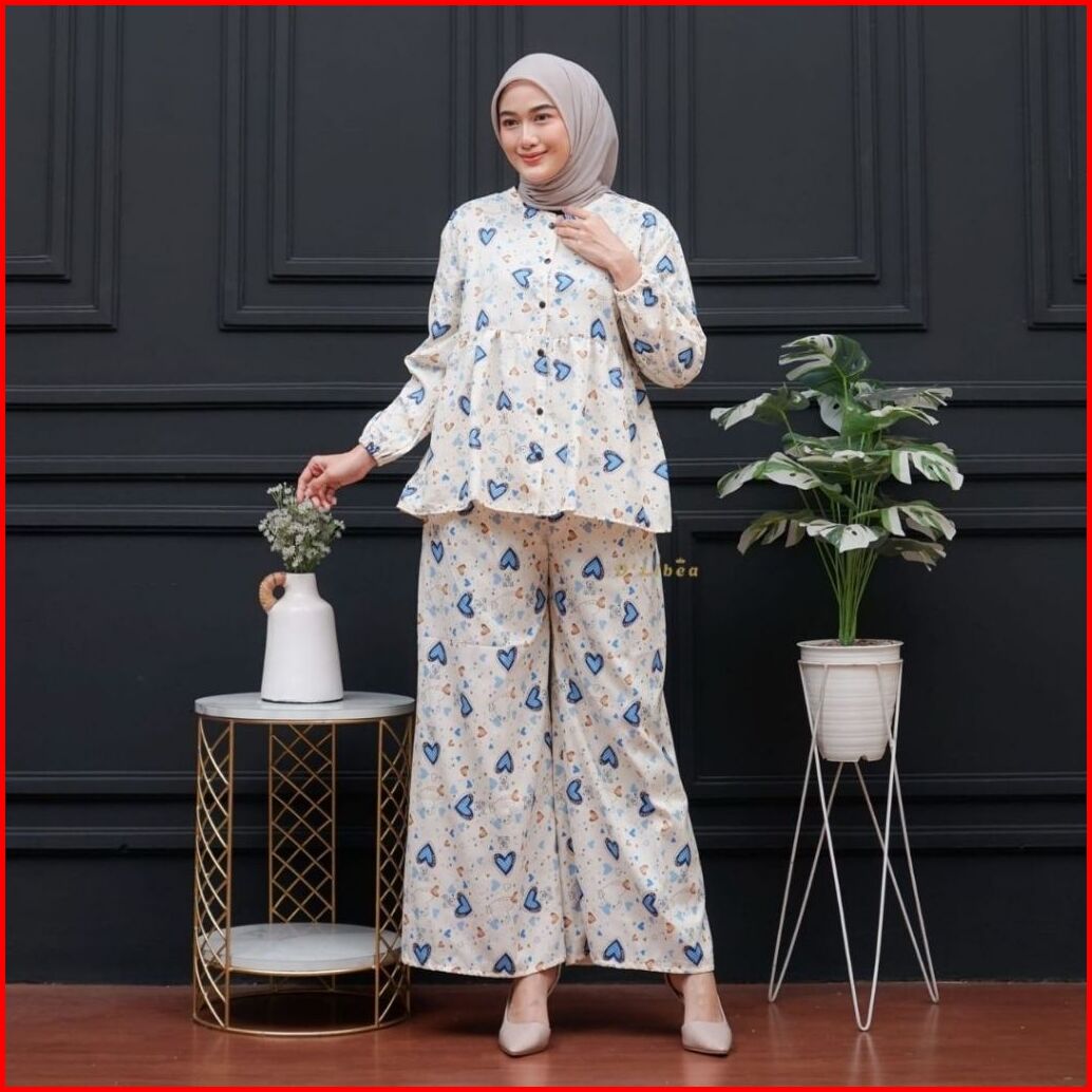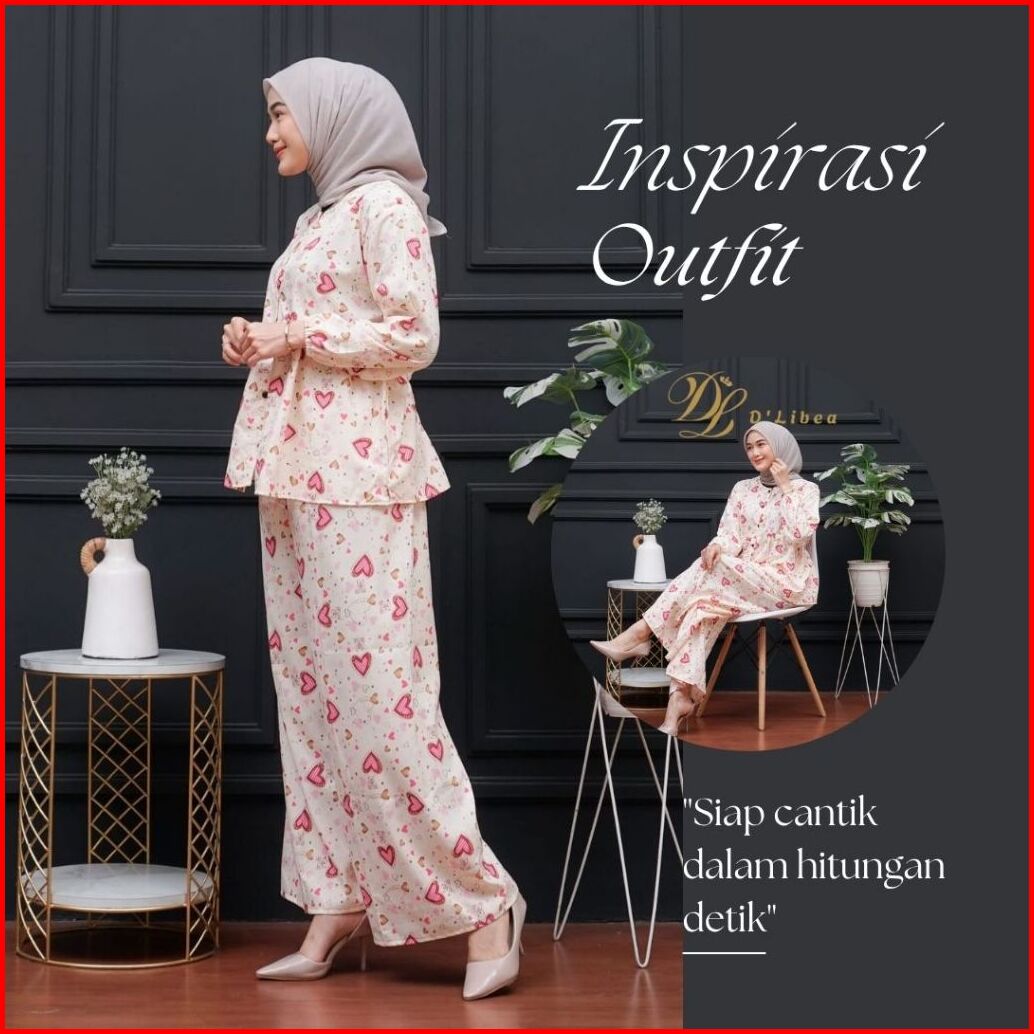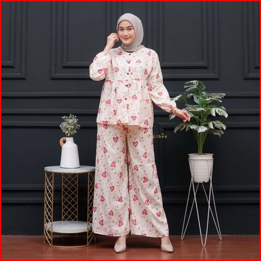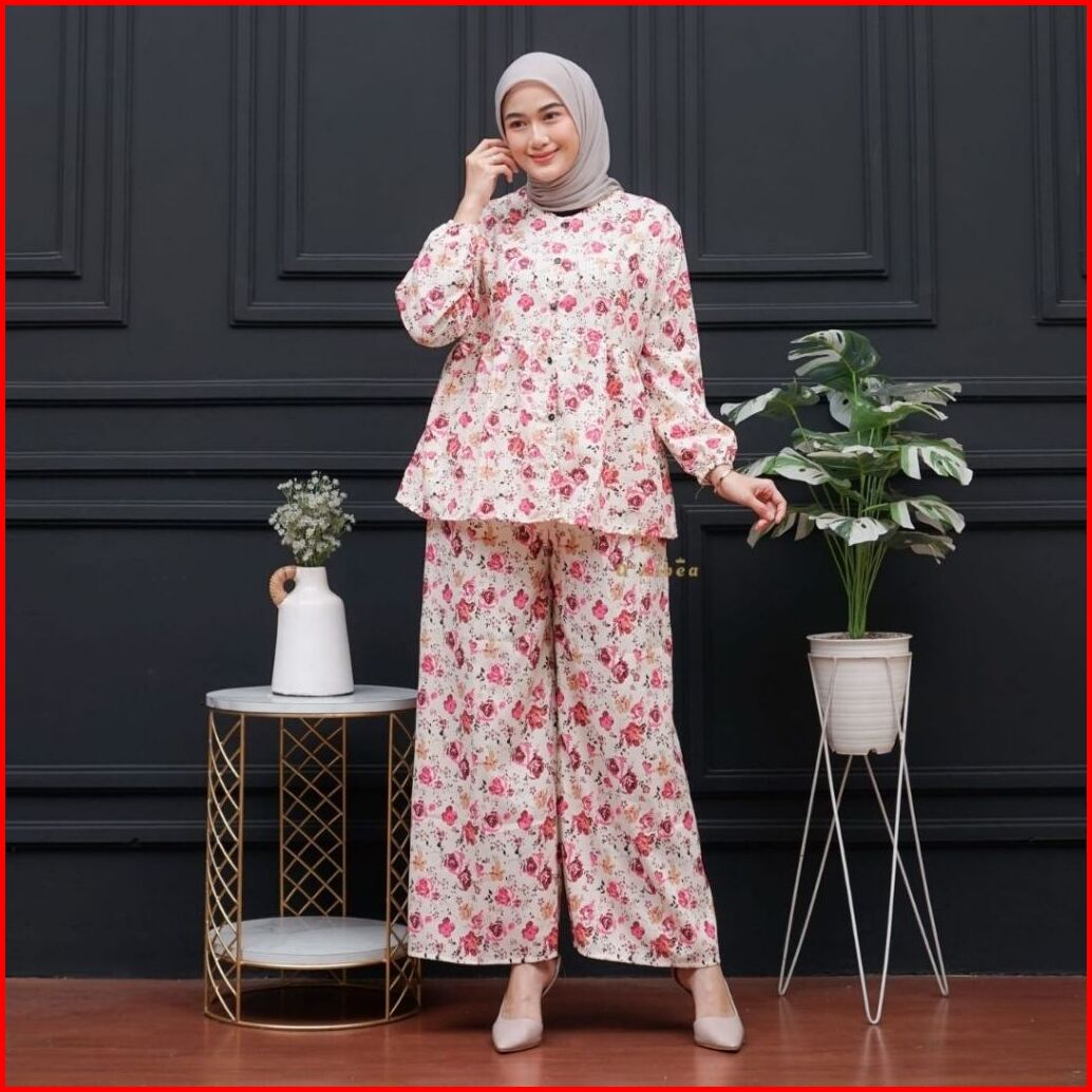 Setelan Wanita Ruffle Kekinian Celana Kulot One Set Camellia Lovina Pink Rayon Friendly Busui Bumil