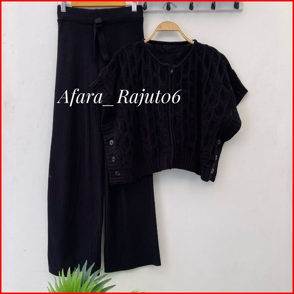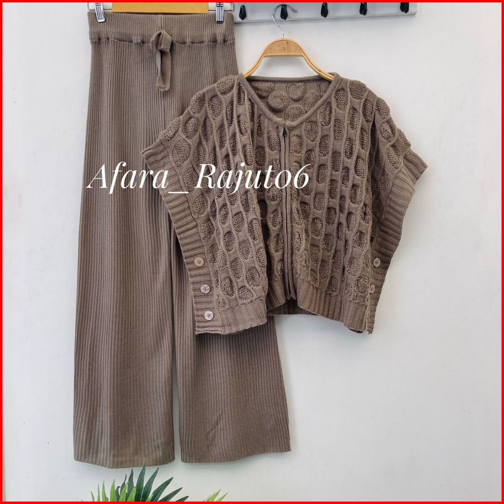 Oneset Yodopena Vest Rompi Rajut Resleting Bolak Balik Motif Kancing Setelan Celana Kulot Premium Wanita Kekinian
