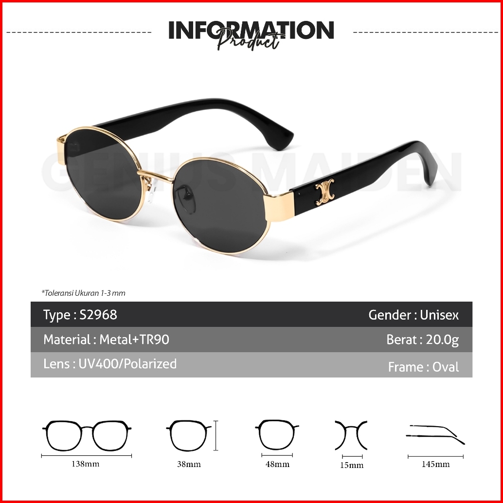 Genius Maiden Kacamata Hitam Sunglasses Retro Vintage Bahan Metal Anti Uv400 Style 1006 S2968 4236 4238