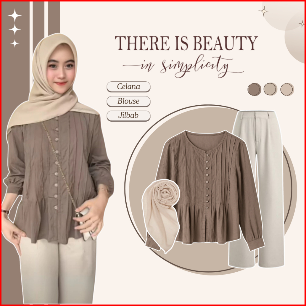 One Set Remaja Korean Style Blouse - Celana Knit - Bella Square Ootd Wanita 1 Set - Ls172
